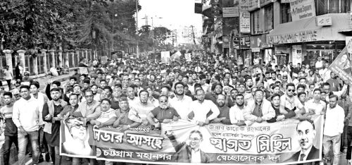 সমাবেশ শেষে বেলায়েত হোসেন বুলু ও জমির উদ্দিন নাহিদের নেতৃত্বে মিছিলটি জমিয়াতুল ফালাহ মসজিদ ময়দান থেকে শুরু হয়ে শহরের প্রধান সড়ক প্রদক্ষিণ শেষে কাজির দেউড়ি নগর বিএনপির দলীয় কার্যালয়ে গিয়ে শেষ হয়।