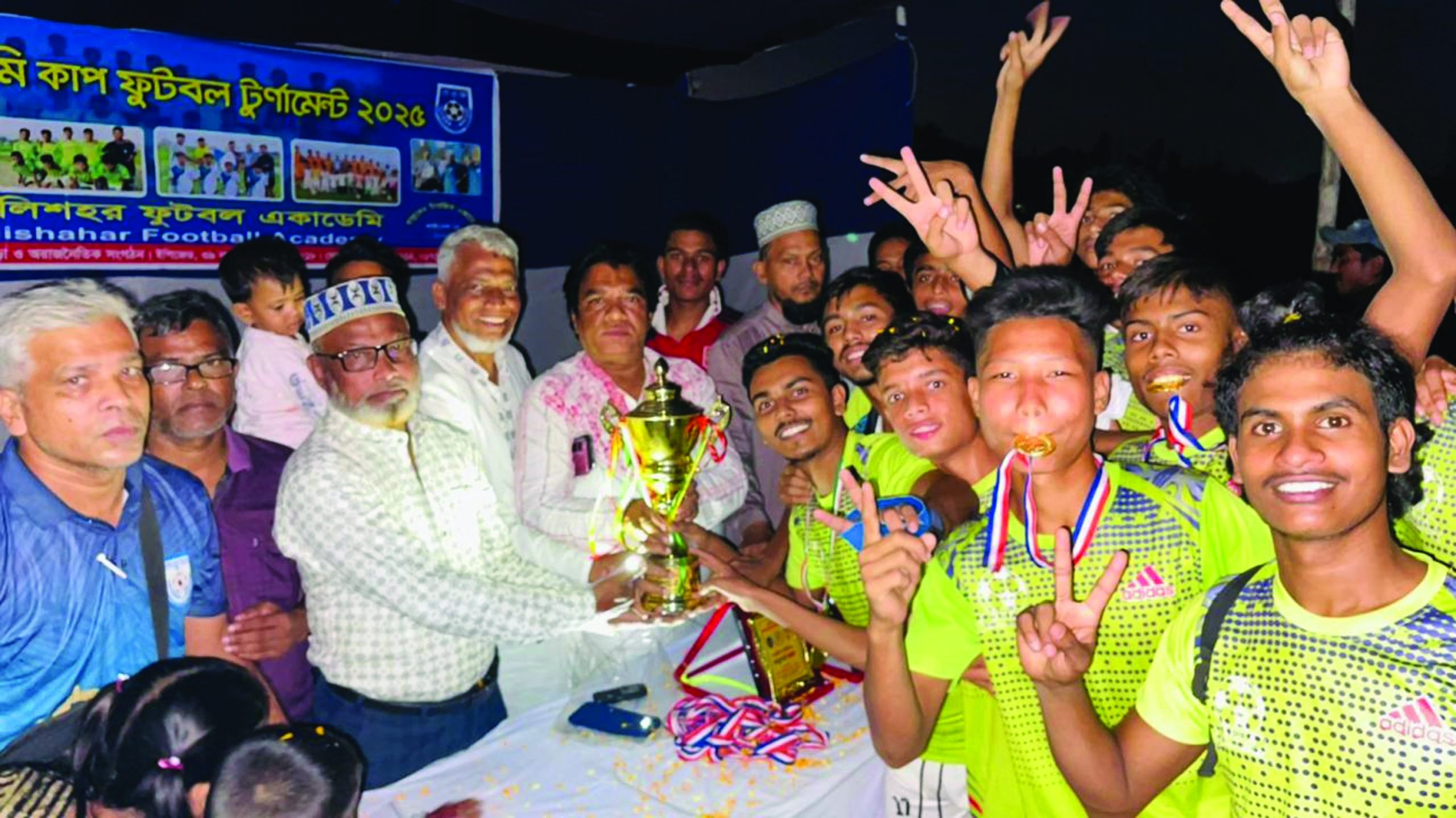 পুরস্কার বিতরণী অনুষ্ঠানে প্রধান অতিথি হিসেবে উপস্থিত থেকে বিজয়ীদের মাঝে পুরস্কার বিতরণ করেন চট্টগ্রাম জেলা জাসাস সিনিয়র ভাইস প্রেসিডেন্ট দোস্ত মোহাম্মদ। উদ্বোধক অতিথি হিসেবে বক্তব্য রাখেন শিক্ষা–ক্রীড়া সংগঠক মো. মুজিবুল হক কোম্পানি, সাবেক ফুটবলার ও শিক্ষা সংগঠক মো. মনিরুল ইসলাম, একাডেমির পরিচালক সদস্য ডা. উদয়ন কান্তি মিত্র, একাডেমির পরিচালক সদস্য মো. খলিলুর রহমান হাওলাদার। টুর্নামেন্টের ব্যবস্থাপনা পরিচালক মো. ইকবাল হোসেনের সভাপতিত্বে ও একাডেমির পরিচালক মুহাম্মদ বাবুল হোসেন বাবলার সঞ্চালনায় পুরস্কার বিতরণী অনুষ্ঠানে উপস্থিত ছিলেন উপদেষ্টা কোচ মো. আলাউদ্দিন, সহকারী কোচ মো. মামুন, মো. রাকিব হোসেন। খেলার রেফারি ছিলেন মো. ওমর ফারুক, সহকারী মো. আতিকুল্লাহ ও তৌসিফ, ৪র্থ রেফারি মো. আতাউর।
