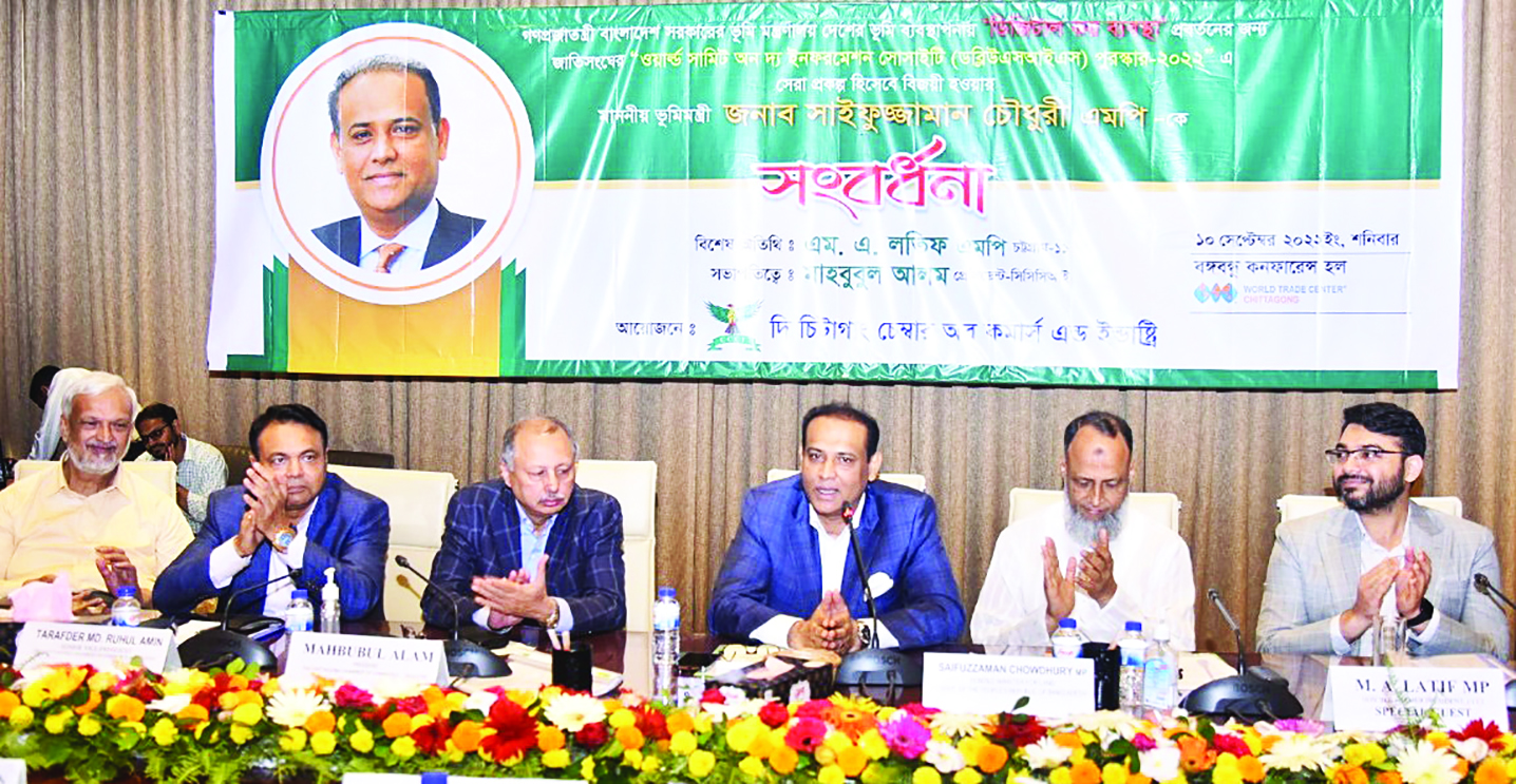 ভূমিমন্ত্রী সাইফুজ্জামান চৌধুরী জাবেদ বলেছেন, দলিল যার জায়গা তার- এই উদ্দেশ্যকে সামনে রেখে আমরা কাজ করছি। ভূমি দখলদারদের দৌরাত্ম্য ও শোষণের হাত থেকে প্রকৃত খতিয়ানভুক্ত মালিকদের রক্ষা করা হবে। এ জন্য ‘ভূমি অপরাধ প্রতিরোধ ও প্রতিকার আইন ২০২১’ প্রণয়ন করা হচ্ছে। যা শীঘ্রই জাতীয় সংসদে উপস্থাপন করা হবে। গতকাল শনিবার আগ্রাবাদের ওয়ার্ল্ড ট্রেড সেন্টারের বঙ্গবন্ধু কনফারেন্স হলে দ্য চিটাগাং চেম্বার অব কমার্স এন্ড ইন্ডাস্ট্রির সংবর্ধনা অনুষ্ঠানে সংবর্ধিত অতিথির বক্তব্যে মন্ত্রী এ আশাবাদ ব্যক্ত করেন। ভূমি ব্যবস্থাপনায় ডিজিটাল কর ব্যবস্থা প্রবর্তনের জন্য বাংলাদেশের ভূমি মন্ত্রণালয় জাতিসংঘের ওয়ার্ল্ড সামিট অন দ্য ইনফরমেশন সোসাইটি (ডব্লিউএসআইএস) পুরস্কার-২০২২ এ সেরা প্রকল্প হিসেবে বিজয়ী হওয়ায় মন্ত্রীকে এ সংবর্ধনা দেয়া হয়।