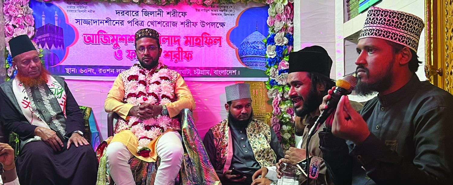 উত্তর নালাপাড়াস্থ দরবারে জিলানী শরীফে হযরত সিদ্দীকে আকবর (রা), হযরত মা ফাতেমা (রা.) স্মরণে আজিমুশশান মিলাদ মাহফিল ও ফাতেহা গত ৫ ডিসেম্বর অনুষ্ঠিত হয়। মাহফিলে সভাপতিত্ব করেন দরবার শরীফের সাজ্জাদানশীন হযরত শাহ্ সুফি মুহাম্মদ জুনাইদ (মা.জি.আ)। খতম শরীফের মোনাজাত পরিচালনা করেন মুফাস্িসর আল্লামা ছালেকুর রহমান কাদেরি। মাহফিলে বক্তব্য রাখেন চরণদ্বীপ দরবার শাহী জামে মসজিদের খতিব মাওলানা মুহাম্মদ রবিউল ইসলাম, উপস্থিত ছিলেন মাওলানা কাজী মুহাম্মদ জালাল উদ্দিন, মাওলানা আব্দুস শুকুর, মাওলানা জসিম উদ্দিন, আব্দুর রহিম, মাস্টার আবুল হোসাইন, সোহেল মুহাম্মদ ফখরুদ্দিন, মেরিন ক্যাপ্টেন আশকারি, এ.এন.এম. মতুর্জা, শাহজাদা জাভির বিন জুনাইদ প্রমুখ। মাহফিলে জিকিরে মোস্তফা (দ.) পরিবেশনায় ছিলেন শায়ের মুহাম্মদ তারেক রেজা, শায়ের মাসুদ রেজা, শায়ের আমিনুল ইসলাম, শায়ের নাঈম রেজা, শায়ের নুরুল্লাহ মাহির। মাহফিলে বক্তারা বলেন, রাসুল (দ.) এর ছায়া সঙ্গী হিসেবে হযরত সিদ্দীকে আকবর (রা.) ছিলেন অতুলনীয়। ইসলামের ক্রাণ কর্তা হিসেবে সিদ্দিকে আকবরের নাম কিয়ামত পর্যন্ত অবিনশ্বর হয়ে থাকবে। মাহফিলে মোনাজাত পরিচালনা করেন মাওলানা ইউনুস তৈয়্যবী যুক্তিবাদী। মোনাজাতে দেশ ও জাতির কল্যাণ, সমৃদ্ধি এবং ফিলিস্তিন সহ বিশ্বের সকল মুসলিম উম্মাহ’র শান্তি কামনায় বিশেষভাবে দোয়া করা হয়। প্রেস বিজ্ঞপ্তি।