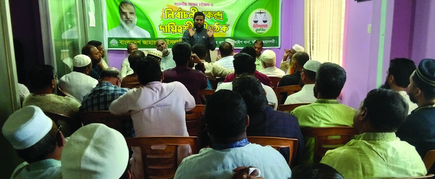 বাংলাদেশ জামায়াতে ইসলামী চট্টগ্রাম মহানগরীর শুরা সদস্য ও পাঁচলাইশ থানা আমীর ইঞ্জিনিয়ার মাহবুবুল হাসান রুমি বলেন, জনগণের মাঝে বৃহত্তর পরিসরে সেবা পৌঁছে দেয়ার সুযোগ দিলে ৭ নং পশ্চিম ষোলশহর ওয়ার্ড উন্নয়নে ব্যাপক পরিবর্তন হবে, তাই জনগণের সেবা নিশ্চিতের মার্কা দাঁড়িপাল্লার বিজয়ে সকলকে এগিয়ে আসতে হবে, প্রত্যেক ভোটারের কাছে বারবার যাওয়ার আহবান জানান। তিনি ৭ নং পশ্চিম ষোলশহর ওয়ার্ড আমীর অধ্যক্ষ কাজী আব্বাস আলীর সভাপতিত্বে ও ওয়ার্ড সেক্রেটারী মুহাম্মদ ইসমাঈলের সঞ্চালনায় নির্বাচনী কেন্দ্র দায়িত্বশীল বৈঠকে প্রধান অতিথির বক্তব্যে এসব কথা বলেন।বিশেষ অতিথির বক্তব্য রাখেন মহানগরীর শুরা সদস্য ও পাঁচলাইশ থানা সেক্রেটারী মাওলানা মফিজুল হক, পাঁচলাইশ থানা বায়তুল মাল সম্পাদক জাহান উদ্দিন, পাঁচলাইশ থানা অফিস সম্পাদক মুহাম্মদ আজিজুল হক।এতে আরও উপস্থিত ছিলেন আনিছুর রহমান চৌধুরী, শেখ মুহাম্মদ আবু জাফর, মুহাম্মদ নুরুল আবছার, মাওলানা হেদায়েত উল্লাহ, মুহাম্মদ শরীফুল ইসলাম, মুহাম্মদ সালাহ উদ্দিন, আব্দুল্লাহ মাসুদ, জাফর আলম কুতুবী, মাঈন উদ্দিন, রেজাউল করিম, আব্দুল কাদের, আহমেদ কবির হিরু, মিজানুর রহমান, সরওয়ার কামাল, নিজাম উদ্দিন, সলিম উল্লাহ, আরিফ হোসাইন ছলিম প্রমূখ। প্রেস বিজ্ঞপ্তি।