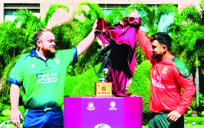 বাংলাদেশ–আয়ারল্যান্ড তিন ম্যাচের টি–টোয়েন্টি সিরিজ আজ থেকে চট্টগ্রামে শুরু হচ্ছে। আয়ারল্যান্ডের বিপক্ষে সিরিজের প্রথম ম্যাচটি সাগরিকার বীরশ্রেষ্ঠ শহীদ ফ্লাইট লেফটেন্যান্ট মতিউর রহমান স্টেডিয়ামে আজ বৃহস্পতিবার সন্ধ্যা ৬টায় শুরু হবে। এর আগে গতকাল বুধবার সিরিজের ট্রফি উন্মোচন করা হয়। বেলা সোয়া ১১টায় হোটেল র্যাডিসন ব্লু’র সামনে খোলা পার্কে বাংলাদেশ দলের অধিনায়ক লিটন দাস ও আয়ারল্যান্ড দলের অধিনায়ক পল স্টারলিং ট্রফিটি উন্মোচন করেন।