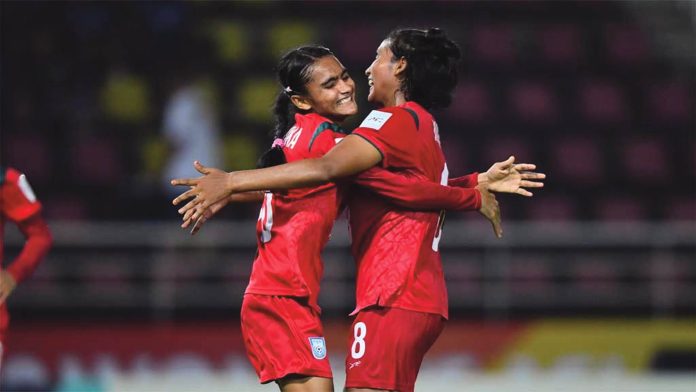 বাংলাদেশের মেয়েরা এএফসি অনূর্ধ্ব–২০ এশিয়ান কাপে তাদের স্বপ্নকেও ছাড়িয়ে যেতে পারতো। কিন্তু তা হলো না। গতকাল বুধবার ব্যাংককে শুরু হওয়া মেয়েদের এই টুর্নামেন্টের প্রথম ম্যাচে স্বাগতিক থাইল্যান্ডকে হতবাক করে এক পর্যায়ে ২–০ গোলে লিড নিয়েছিল পিটার বাটলারের দল। তবে ১১ মিনিটের ব্যবধানে দুটি পেনাল্টিসহ তিন গোল হজম করে ম্যাচ থেকে ছিটকে যায় বাংলাদেশের মেয়েরা। শেষ পর্যন্ত জিততে যাওয়া ম্যাচটি বাংলাদেশ হেরেছে ৩–২ গোলে। বাংলাদেশের জোড়া গোল করেছেন ফরোয়ার্ড সাগরিকা। ৩৫ মিনিটে প্রথম ও ৫৫ মিনিটে দ্বিতীয় গোল করে বাংলাদেশের সামনে রঙিন স্বপ্ন দেখানো সাগরিকাকে মাঠ ত্যাগ করতে হয়েছে বিমর্ষ হৃদয়ে। সাগরিকার জোড়া গোলের পর থাইল্যান্ডের জোড়া পেনাল্টি। সেখানেই সম্ভবত নতুন করে লেখা হয়ে যায় ম্যাচের চিত্রনাট্য। বাংলাদেশের এই দলটিতে বেশ কয়েকজন আছেন জাতীয় দলে খেলার অভিজ্ঞতা সম্পন্ন। জাতীয় দলের অধিনায়ক আফঈদা খন্দকার ছিলেন অনূর্ধ্ব–২০ দলেরও অধিনায়ক। তবে এশিয়ান কাপের প্রথম ম্যাচে আফঈদার পরিবর্তে কোচ পিটার বাটলার অধিনায়কের ব্যান্ড তুলে দেন অর্পিতা বিশ্বাসের হাতে। শুরু থেকে দুর্দান্ত খেলছিল বাংলাদেশ। যার ইতিবাচক প্রভাব পড়েছিল স্কোরবোর্ডেও। ৩৫ মিনিটে সাগরিকার গোল থাইল্যান্ডের দর্শকদের হতাশ করে দিয়েছে। মাঝ মাঠ থেকে লম্বা পাস এলে অনেকটা দৌড়ে বল ধরেন সাগরিকা। তারপর বল নিয়ন্ত্রণে নিয়ে ঢুকে পড়েন এবং গড়ানো শট নেন। বল দ্বিতীয় পোস্টে বাতাস দিয়ে জড়িয়ে যায় জালে। বিরতির পর খেলা শুরুর পাঁচ মিনিটের মধ্যে ব্যবধান দ্বিগুণ করে বাংলাদেশ। এবারো গোলদাতা সেই সাগরিকা। ২–০ তে পিছিয়ে পড়া থাইল্যান্ড ম্যাচে ফিরতে মরিয়া হয়ে চাপ বাড়ায় বাংলাদেশের রক্ষণে। সেই ধারাবাহিকতায় স্বাগতিক মেয়েরা ৬৯ মিনিটে পেনাল্টি থেকে ব্যবধান ২–১ করে । স্বাগতিক দলের কায়েওয়ান্তাকে বক্সে ফেলে দেন বাংলাদেশের সুরভীন আক্তার আফরিন। রেফারি পেনাল্টির বাঁশি বাজালে গোল করেন কুরিসারা। ৭৫ মিনিটে দ্বিতীয় পেনাল্টি থেকে ম্যাচে সমতা ফেরায় থাইল্যান্ডের মেয়েরা। এবার থাইল্যান্ডের পিচাইয়াতিদাকে বক্সে ফেলে দেন নবীরণ। পেনাল্টি থেকে ম্যাচের স্কোর ২–২ করেন রিনিয়াপাথ। ৭৯ মিনিটে বাংলাদেশ রক্ষণকে বোকা বানিয়ে প্রথমবারের মতো এগিয়ে যায় থাইল্যান্ড। পিচাইয়াতিদা থাইল্যান্ডের গ্যালারিতে উচ্ছ্বাস এনে দেন ব্যবধান ৩–২ করে।