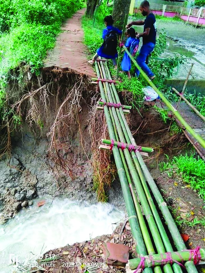 তখন সেখানে উপস্থিত স্থানীয় বেশ কয়েকজন ক্ষুব্ধ অভিভাবক বলেন, ব্যাপারটি আমরা স্থানীয় মেম্বার–চেয়ারম্যানদের অনেকবার জানিয়েছি। কিন্তু তাদের কুম্ভকর্ণের ঘুম ভাঙাতে না পেরে আমরা স্থানীয়দের সহযোগিতায় বাঁশ দিয়ে অস্থায়ীভাবে পারাপারের উদ্যোগ নিযেছি। না হয় আমাদের সন্তানদের স্কুলে পাঠাতে পারছি না কিছুতেই।