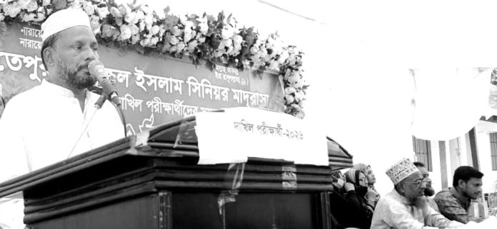 ফতেপুর মনজুরুল ইসলাম সিনিয়র মাদ্রাসার ২০২৬ সালের দাখিল পরীক্ষার্থীদের সফলতা কামনায় দোয়া ও মিলাদ মাহফিল গত ১৬ এপ্রিল মাদ্রাসা ময়দানে অধ্যক্ষ মাওলানা মুফতি আবদুল আউয়াল আল কাদেরির সভাপতিত্বে অনুষ্ঠিত হয়। মাওলানা মুহাম্মদ নুরুল্লাহ রায়হান খান আল কাদেরির সার্বিক পরিচালনায় অনুষ্ঠানে প্রধান অতিথি ছিলেন মাদ্রাসার দাতা সদস্য ও সাবেক সভাপতি মুহাম্মদ জাকের হোসেন চেয়ারম্যান। প্রধান আলোচক ছিলেন মাদ্রাসা গভার্নিং বডি সভাপতি মুহাম্মদ সোহেল। স্বাগত বক্তব্য রাখেন উপাধ্যক্ষ মাওলানা মুফতি আবুল কাশেম রেজভি। বক্তব্য রাখেন– গভর্নিং বডি সদস্য মুহাম্মদ জাহাঙ্গীর আলম, মুহাম্মদ নুরুদ্দীন সওদাগর, মাদ্রাসার সাবেক সহকারি অধ্যাপক মাওলানা সোলাইমান কাদেরি, সহকারি অধ্যাপক মাওলানা আবু বকর সিদ্দিকী, প্রভাষক মাওলানা বুলবুল বাহার, মাওলানা জামাল উদ্দিন আল কাদেরি, মাস্টার নুরুল ইসলাম, মাওলানা হাফেজ আলমগীর প্রমুখ। উপস্থিত ছিলেন– সকারি অধ্যাপক নিলুফার জাহান, নাসরিন নাভিলা, শিক্ষক হোসনে আরা, আসমাউল হুসনা, মাস্টার জাফর, সহকারি মাওলানা শামসুল আলম, মুজাম্মেল রেজা আজিজি, সামিহা ইবনাত, মাওলানা আব্দুস সালাম, ক্বারি ইউসুফ, মাস্টার নুরুল আবছার, মাওলানা মুসা কাজেম, ফারহানা, হেলাল উদ্দিন, আহমদ শাহ আদিল, তৌহিদুল আলম, মুহাম্মদ শরফুদ্দিন প্রমুখ। পরীক্ষার্থীদের মধ্যে বক্তব্য রাখেন– ওবাইদুল মুস্তফা সিদ্দিকি। প্রধান অতিথির বক্তব্যে জাকের হোসেন চেয়ারম্যান বলেন– শিক্ষাই জাতির মেরুদণ্ড। একটি সুশিক্ষিত সমাজ একটি জাতির ভাগ্য পরিবর্তনে সবচেয়ে বেশি ভূমিকা রাখতে পারে। আজ যারা জীবনের সবচেয়ে গুরুত্বপূর্ণ পরীক্ষায় অবতীর্ণ হচ্ছে তাদের মধ্য হতেই গড়ে ওঠবে দেশগড়ার ভবিষ্যৎ কর্ণধার। পরে দাখিল পরীক্ষার্থীদের সফলতা কামনায় মিলাদ কিয়াম শেষে মুনাজাত পরিচালনা করেন মাদ্রাসার অধ্যক্ষ মাওলানা মুফতি আবদুল আউয়াল আল কাদেরি।