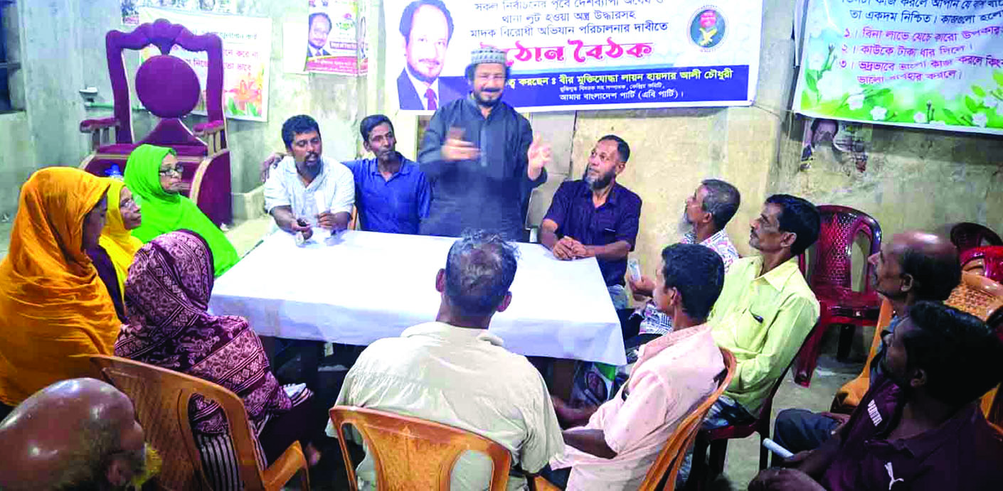 দেশব্যাপী অগ্নিসন্ত্রাস ও নৈরাজ্য দমনের দাবিতে চট্টগ্রাম–৯ আসনে আমার বাংলাদেশ পার্টির (এবি পার্টি) মনোনয়নপ্রাপ্ত এমপি প্রার্থী বীর মুক্তিযোদ্ধা লায়ন হায়দার আলী চৌধুরীর আহ্বানে জামালখান নিজ কার্যালয়ে সভা এক অনুষ্ঠিত হয়। দিদারুল আলমের সভাপতিত্বে সভায় লায়ন হায়দার আলী চৌধুরী বলেন, ত্রয়োদশ জাতীয় সংসদ নির্বাচন যতোই ঘনিয়ে আসছে, ততোই দেশব্যাপী অজানা কারণে গুরুত্বপূর্ণ জায়গাগুলোকে টার্গেট করে গণপরিবহনে আগুন লাগিয়ে দিয়ে অগ্নিসন্ত্রাস সৃষ্টির মাধ্যমে রাষ্ট্রীয় সম্পদ বিনষ্ট করা হচ্ছে। বিভিন্ন রাজনৈতিক দলের নাম ভাঙ্গিয়ে চাঁদাবাজি, জোর পুর্বক অসহায় মানুষের জায়গা সম্পদ অবৈধভাবে দখল করে নিয়ে যাওয়া হচ্ছে, নির্বাচনী গণসংযোগ করাকালীন প্রার্থীর জীবননাশের চেষ্টা চালানো হচ্ছে, খুন ধর্ষণের ঘটনা দিনে দিনে বৃদ্ধি পাওয়ায় দেশের সাধারণ মানুষ উৎকণ্ঠায় আছেন। তিনি বলেন, অগ্নিসন্ত্রাসের কারণে শিক্ষার্থীরা ও তাদের অভিভাবকরা নিরাপত্তাহীনতায় ভুগছেন। এ ধরণের অনিশ্চয়তা থেকে জাতি মুক্তি চায়। সন্ত্রাসী হামলাকারী, অগ্নিসন্রাসী, নৈরাজ্য সৃষ্টিকারী, অবৈধ অস্ত্রধারীদের ও চাঁদাবাজদের কঠোর হাতে দমন করার জন্য তিনি সরকার, প্রশাসন ও আইন–শৃঙ্খলা রক্ষাকারী বাহিনীর প্রতি জোর দাবি জানান। সভায় বক্তব্য রাখেন মোহাম্মদ সেলিম, মো. গিয়াসউদ্দিন, রাহেনা আক্তার, মো. ফারুক, মো. হানিফ, রোজিনা আক্তার, পান্না আক্তার ও রহিমা বেগম প্রমুখ। প্রেস বিজ্ঞপ্তি।