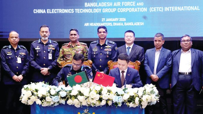 বাংলাদেশে মনুষ্যবিহীন আকাশযান বা ড্রোন তৈরির কারখানা স্থাপনের জন্য চীনের একটি কোম্পানির সঙ্গে চুক্তি করেছে বাংলাদেশ বিমান বাহিনী। গতকাল মঙ্গলবার বিমান বাহিনীর সদর দপ্তরে আনুষ্ঠানিকভাবে এই চুক্তি স্বাক্ষর হয় বলে আন্তঃবাহিনী জনসংযোগ পরিদপ্তর– আইএসপিআরের এক ফেইসবুক পোস্টে বলা হয়েছে। সেই পোস্টে বলা হয়েছে, দুই দেশের মধ্যে চুক্তির (জিটুজি) আওতায় বাংলাদেশ বিমান বাহিনীর সঙ্গে চায়না ইলেকট্রনিক্স টেকনোলজি গ্রুপ কর্পোরেশন ইন্টারন্যাশনালের (সিইটিসি) ড্রোন বা ইউএভি তৈরি ও সংযোজন কারখানা স্থাপন এবং প্রযুক্তি হস্তান্তর চুক্তি স্বাক্ষরিত হয়েছে। বিমান বাহিনী প্রধান এয়ার চিফ মার্শাল হাসান মাহমুদ খাঁন অনুষ্ঠানে প্রধান অতিথি হিসেবে উপস্থিত ছিলেন। খবর বিডিনিউজের।