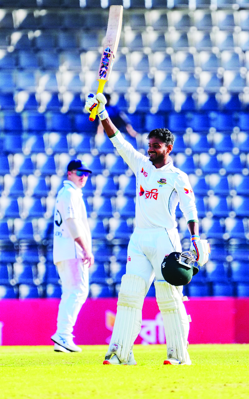 চা–বিরতির পর বাংলাদেশের রান ২শ পার করে টেস্ট ক্যারিয়ারের ১৯তম ম্যাচে দ্বিতীয় সেঞ্চুরি তুলে নেন জয়। ২০২২ সালে ক্যারিয়ারের তৃতীয় টেস্টে ডারবানে দক্ষিণ আফ্রিকার বিপক্ষে প্রথম সেঞ্চুরি করেছিলেন তিনি। এরপর ৩০ ইনিংস সেঞ্চুরির দেখা পাননি জয়। চার মেরে ১৯০ বলে সেঞ্চুরির স্বাদ নেওয়ার পর ইনিংস বড় করেন জয়। অন্যপ্রান্তে ইনিংস বড় করেন মুমিনুলও। ছক্কা মেরে ৭৪ বলে টেস্ট ক্যারিয়ারের ২৩তম অর্ধশতক পূর্ণ করেন তিনি।