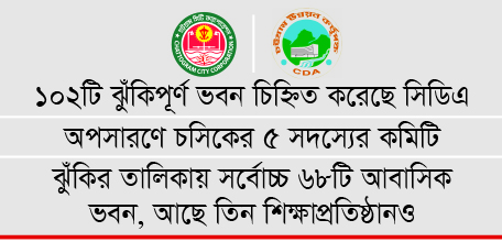 নগরে ৫৭টি ঝুঁকিপূর্ণ ভবন চিহ্নিত করে তা ভেঙে ফেলার জন্য ২০০৭ সালে চট্টগ্রাম সিটি কর্পোরেশনকে (চসিক) অনুরোধ করে সিডিএ। এর ৮ বছর পর ২০১৩ সালে রাজধানীর রানা প্লাজা ট্রাজিডির পর ঝুঁকিপূর্ণ ভবন অপসারণে অভিযান শুরু করে চসিক। কিন্তু কিছুদিনের মধ্যে তা বন্ধ হয়ে যায়। এরপর সিডিএ নতুন করে ঝুঁকিপূর্ণ ভবনের তালিকা হালনাগাদ করেনি। আবার চসিকের কার্যক্রমও স্থির ছিল। তবে সম্প্রতি দেশে বার বার ভূমিকম্প অনুভূত হওয়ায় নড়চড়ে বসে চসিক–সিডিএ দুই সংস্থায়। নগরে ১০২টি ঝুঁকিপূর্ণ ভবনের তালিকা করে তা চসিককে হস্তান্তর করে সিডিএ। এরপ্রেক্ষিতে চসিক ঝুঁকিপূর্ণ ভবন অপসারণে গতকাল সোমবার ৫ সদস্যের একটি বিশেষ কমিটিও গঠন করে।