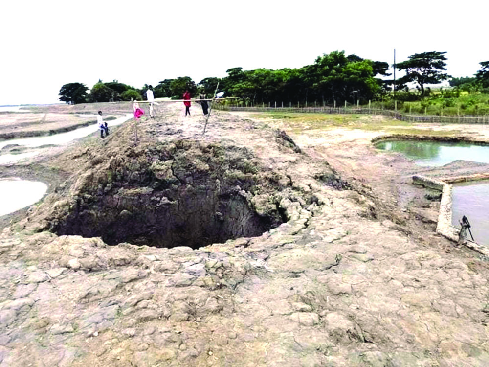 কক্সবাজারের পেকুয়ার রাজাখালীর বদিউদ্দিন পাড়া থেকে নতুন ঘোনা বেড়িবাঁধের সমুদ্র উপকূলের একটি স্লুইস গেটের (জলকপাট) পাশের মাটি সরে গিয়ে বিশাল গর্তের সৃষ্টি হয়। চলতি বছরের বর্ষা মৌসুমের শুরুতে (দুমাস আগে) কয়েক ঘণ্টার মাঝারি বর্ষণে এই সমস্যার সৃষ্টি হলেও তা মেরামতে কোনো উদ্যোগ দেখা যায়নি।