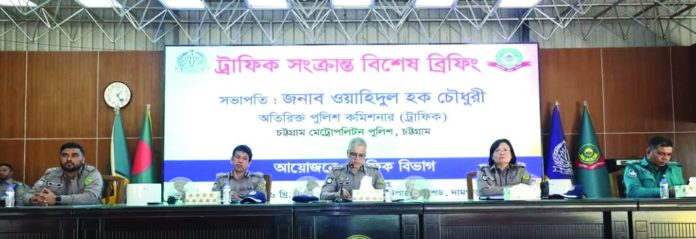 চট্টগ্রাম মেট্রোপলিটন পুলিশের (সিএমপি) ট্রাফিক বিভাগের উদ্যোগে ট্রাফিক সংক্রান্ত বিশেষ ব্রিফিং সভা গতকাল বুধবার বেলা সাড়ে ১১টায় দামপাড়া পুলিশ লাইন্সে মাল্টিপারপাস শেডে অনুষ্ঠিত হয়। এতে সভাপতিত্ব করেন সিএমপির অতিরিক্ত পুলিশ কমিশনার (ট্রাফিক) ওয়াহিদুল হক চৌধুরী। সভায় নগরীর সার্বিক ট্রাফিক ব্যবস্থাপনা, যানজট নিরসন, সড়কে শৃঙ্খলা বজায় রাখা, ট্রাফিক আইন কার্যকরভাবে বাস্তবায়ন এবং জনসাধারণের নিরাপদ চলাচল নিশ্চিতকরণ বিষয়ে বিস্তারিত আলোচনা করা হয়।