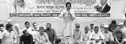 কোতোয়ালী : নাসিমন ভবন দলীয় কার্যালয় মাঠে অনুষ্ঠিত কোতোয়ালী থানা বিএনপির কর্মসূচিতে প্রধান অতিথি ছিলেন নগর বিএনপির সদস্য সচিব আবুল হাশেম বক্কর। তিনি বলেন, দেশে এখন শ্বাসরুদ্ধকর পরিস্থিতি বিরাজ করছে। দ্রব্যমূল্যের ঊর্ধ্বগতির ফলে মানুষ দিশেহারা। মনজুর রহমানের সভাপতিত্বে বক্তব্য রাখেন নগরের যুগ্ম আহ্বায়ক আবদুল মান্নান।