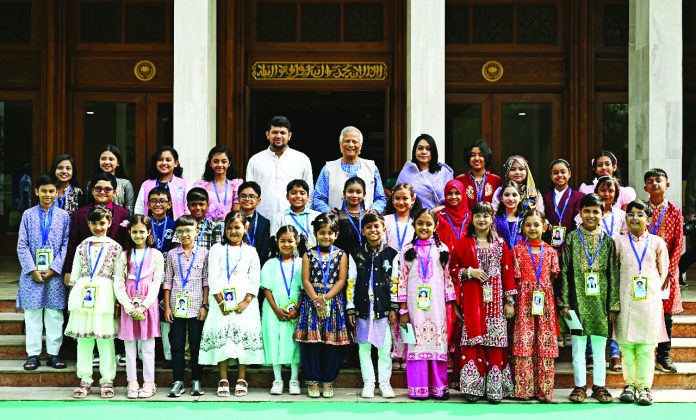 প্রধান উপদেষ্টা অধ্যাপক ড. মুহাম্মদ ইউনূস ‘নতুন কুঁড়ি ২০২৫’–এর বিজয়ীদের হাতে পুরস্কার তুলে দিয়েছেন। প্রধান উপদেষ্টার কার্যালয়ের শাপলা হলে গতকাল বৃহস্পতিবার ‘নতুন কুঁড়ি ২০২৫’–এর বিজয়ীদের পুরস্কার বিতরণ করা হয়। প্রধান উপদেষ্টা ‘ক’ ও ‘খ’ গ্রুপের সেরা দুই বিজয়ীর হাতে পুরস্কার তুলে দেন। ‘ক’ গ্রুপে টাঙ্গাইল জেলার প্রেয়সী চক্রবর্তী এবং ‘খ’ গ্রুপে সুনামগঞ্জ জেলার শুভ মিতা তালুকদার চ্যাম্পিয়ন হয়। তারা প্রত্যেকে একটি করে ক্রেস্ট এবং ৩ লাখ টাকার চেক গ্রহণ করে। খবর বাসসের।