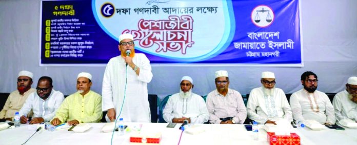 তিনি গতকাল শনিবার দেওয়ান বাজারস্থ মহানগরী জামায়াতের কার্যালয়ে বাংলাদেশ ইসলামী একাডেমি (বিআইএ) মিলনায়তনে বাংলাদেশ জামায়াতে ইসলামী মহানগরীর উদ্যোগে ৫ দফা গণদাবি আদায়ের লক্ষ্যে পেশাজীবীদের নিয়ে আয়োজিত আলোচনা সভায় প্রধান অতিথির বক্তব্যে এসব কথা বলেন।