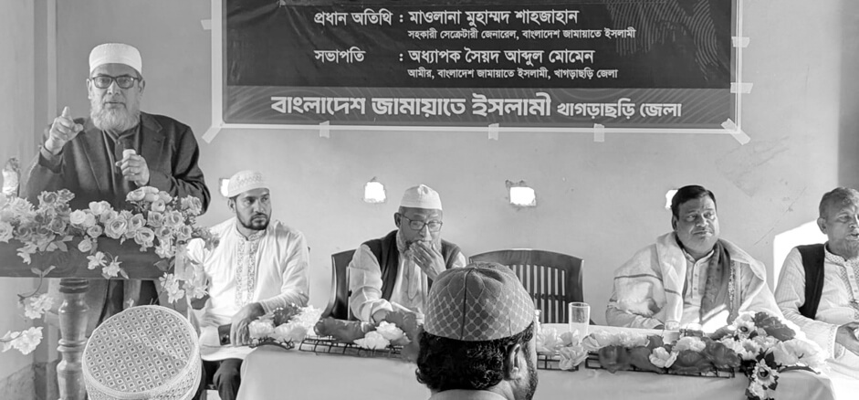 বাংলাদেশ জামায়াতে ইসলামী খাগড়াছড়ি পার্বত্য জেলা শাখার উদ্যোগে দায়িত্বশীল সমাবেশ অনুষ্ঠিত হয়েছে। গতকাল মঙ্গলবার খাগড়াছড়ি শহরের দারুল আইতাম এতিমখানা সম্মেলন কক্ষে এ সমাবেশে প্রধান অতিথি ছিলেন বাংলাদেশ জামায়াতে ইসলামীর সহকারী সেক্রেটারি জেনারেল মুহাম্মদ শাহজাহান। তিনি বলেন, একটি নতুন ও সমৃদ্ধ বাংলাদেশ গড়তে হলে সৎ, যোগ্য ও দেশপ্রেমিক নেতৃত্বের কোনো বিকল্প নেই। নৈতিকতা ও আদর্শভিত্তিক রাজনীতির মাধ্যমেই জনগণের আশা–আকাঙ্ক্ষা বাস্তবায়ন সম্ভব। জামায়াতে ইসলামী মানুষের অধিকার, ন্যায়বিচার ও ইনসাফভিত্তিক সমাজ প্রতিষ্ঠার লক্ষ্যে নিরলসভাবে কাজ করে যাচ্ছে। জামায়াতে ইসলামী খাগড়াছড়ি পার্বত্য জেলা আমির অধ্যাপক সৈয়দ আব্দুল মোমেনের সভাপতিত্বে এবং জেলা সেক্রেটারি মিনহাজুর রহমানের সঞ্চালনায় সমাবেশে বিশেষ অতিথি ছিলেন, খাগড়াছড়ি পার্বত্য জেলার সংসদ সদস্য প্রার্থী অ্যাডভোকেট এয়াকুব আলী চৌধুরী।