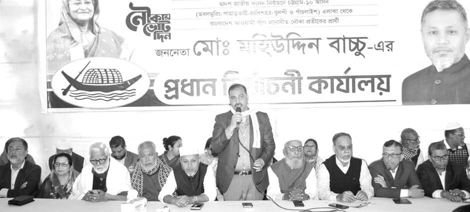 দ্বাদশ জাতীয় সংসদ নির্বাচনে চট্টগ্রাম–১০ সংসদীয় আসন থেকে আওয়ামী লীগ মনোনীত নৌকা প্রতীকের বিজয়ী প্রার্থী মোহাম্মদ মহিউদ্দিন বাচ্চু এমপি গতকাল সোমবার সকালে ওয়াসা মোড়স্থ তাঁর নির্বাচনী কার্যালয়ে নির্বাচনকালীন দিনে ভোট কেন্দ্রে নৌকা প্রতীকের পক্ষে দায়িত্বপ্রাপ্ত পোলিং এজেন্টদের সাথে মতবিনিময় সভায় মিলিত হন।