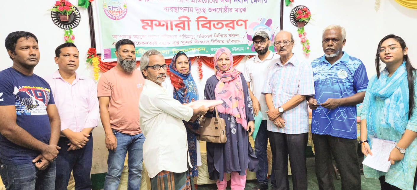 ডেঙ্গু, ম্যালেরিয়া ও চিকনগুনিয়া রোগ প্রতিরোধকল্পে ঢাকাস্থ চট্টগ্রাম মহিলা সোসাইটির উদ্যোগে নবীন মেলার ব্যবস্থাপনায় দুস্থ জনগোষ্ঠীর মাঝে গতকাল শনিবার মশারি বিতরণ করা হয়েছে। নবীন মেলার সভাপতি জামাল উদ্দিন বাবুলের সভাপতিত্বে অনুষ্ঠানে প্রধান অতিথি ছিলেন ডা. শারমিন শরীফ। বিশেষ অতিথি ছিলেন ডা. তাসলিম চৌধুরী, অধ্যাপক কাউছার আক্তার ও আব্দুল ওয়াহিদ। আরও উপস্থিত ছিলেন মেলার সহসভাপতি সাইফুল আলম বাপ্পী, যুগ্ম সম্পাদক হারুন রশিদ, সদস্য অধ্যাপক সঞ্জীব কুমার সেন, সমাজকল্যাণ ও প্রচার বিষয়ক সম্পাদক ইমরান জুয়েল, সাহিত্য ও সাংস্কৃতিক বিষয়ক সম্পাদক জয়দীপ চৌধুরী আকাশ। প্রেস বিজ্ঞপ্তি।