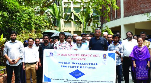 চুয়েট : চট্টগ্রাম প্রকৌশল ও প্রযুক্তি বিশ্ববিদ্যালয় (চুয়েট)-এর ইনস্টিটিউশনাল কোয়ালিটি অ্যাসিউরেন্স সেল (আইকিউএসি) এবং গবেষণা ও সম্প্রসারণ অধিদপ্তরের তত্ত্বাবধানে বিশ্ব মেধাস্বত্ব দিবস–২০২৬ উদযাপিত হয়েছে।