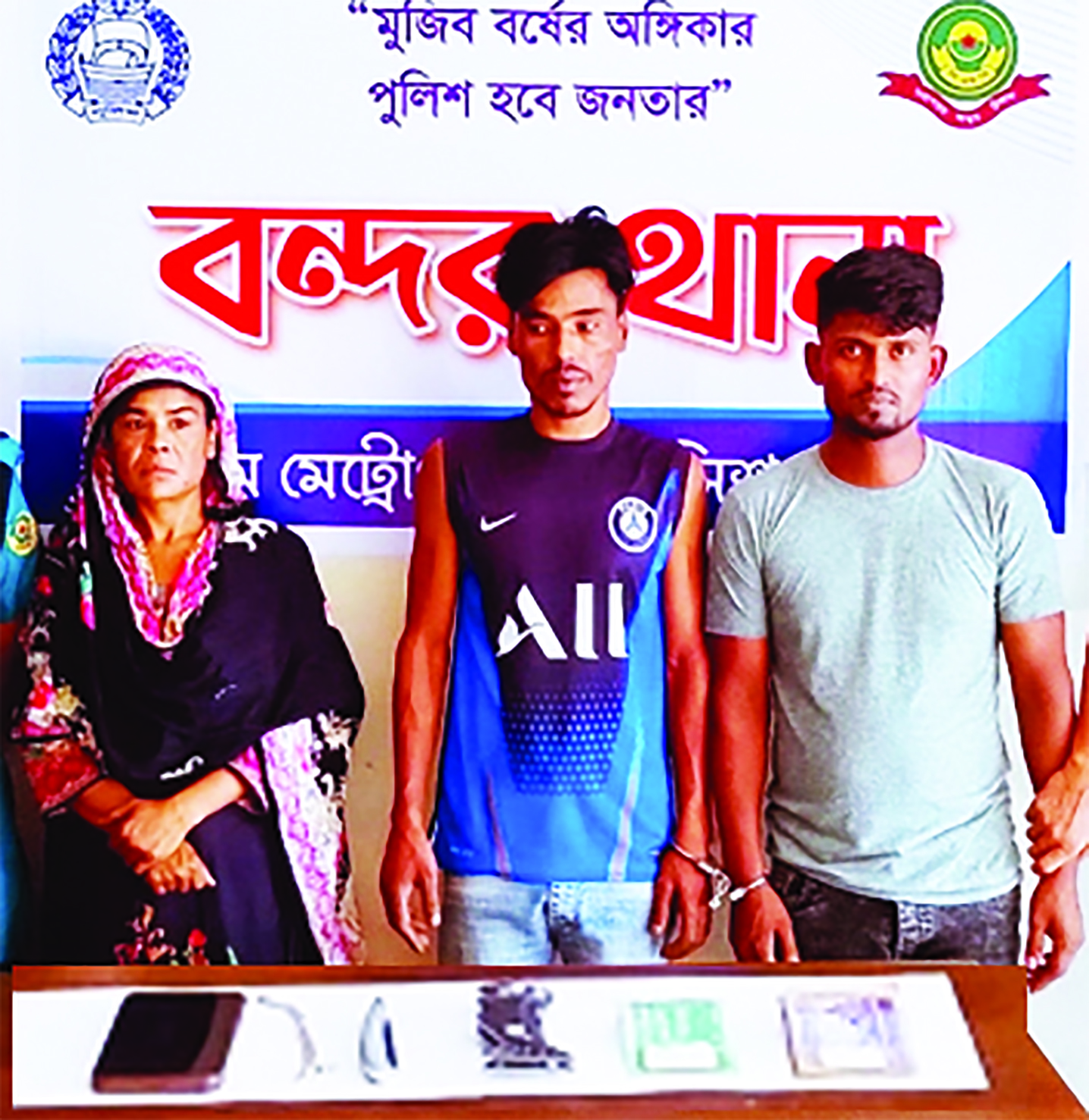 নগরীতে পথচারীদের ফাঁদে ফেলে ছিনতাই ও চাঁদা আদায়ের অভিযোগে এক নারী গ্যাং লিডারসহ চক্রের তিন সদস্যকে গ্রেপ্তার করেছে পুলিশ। গত বৃহস্পতিবার রাতে বন্দর থানাধীন ধুমপাড়া সাগরপাড় মহসীন কলোনি থেকে তাদের গ্রেপ্তার করা হয়। গ্রেপ্তারকৃতরা হল মো. ফুল মিয়া (৩৯), মো. হাসান শেখ (২৮) এবং হামিদা আক্তার ওরফে রুনা (৪০)। এ সময় তাদের কাছ থেকে ধারালো অস্ত্রসহ ছিনতাই করা টাকা ও মোবাইল উদ্ধার করা হয়।