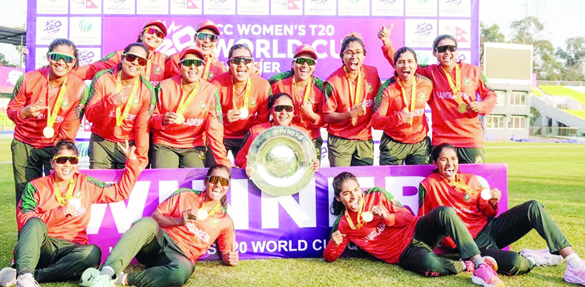 নারী টি–টোয়েন্টি বিশ্বকাপ বাছাই পর্বে সাত ম্যাচের সাতটিতেই জয়লাভ করেছে বাংলাদেশ। তাতে করে অপরাজিত থেকেই টি–টোয়েন্টি বিশ্বকাপে যাওয়া হলো বাংলাদেশের। নেপালের মুলপানি ক্রিকেট গ্রাউন্ডে গতকাল রোববার সকালে নেদারল্যান্ডের দেওয়া ১০৩ রানের লক্ষ্য ২০ বল হাতে রেখেই পেরিয়ে যায় লাল–সবুজের প্রতিনিধিরা। বল হাতে নাহিদা আক্তারের বিষাক্ত ঘূর্ণি আর ব্যাট হাতে অধিনায়ক নিগার সুলতানা জ্যোতির হার না মানা ফিফটি, এই দুইয়ে ভর করে নেদারল্যান্ডসকে ৭ উইকেটে হারিয়ে নারী টি–টোয়েন্টি বিশ্বকাপ বাছাইপর্বে অপরাজিত চ্যাম্পিয়ন হয় বাংলাদেশ। বাছাইপর্বে গ্রুপ পর্ব থেকে শুরু করে সুপার সিক্স; টানা সাত ম্যাচের সবকটিতে জিতে অপরাজিত চ্যাম্পিয়ন হিসেবে আগামী জুন–জুলাইয়ে ইংল্যান্ড ও ওয়েলসে অনুষ্ঠেয় বিশ্বকাপের মূল পর্বে পা রাখবে বাংলাদেশ। এদিন টস জিতে ব্যাটিংয়ে নেমে শুরুতেই নাহিদা আক্তারের তোপের মুখে পড়ে নেদারল্যান্ডস। মাত্র ২৩ রানে ৫ উইকেট হারিয়ে ডাচরা যখন চরম বিপর্যয়ে, তখন হাল ধরেন রবিন রাইক ও সানিয়া খুরানা। তাদের ৭৮ রানের জুটির ওপর ভর করে ১০০ পার করে ডাচরা। নাহিদা ৪ ওভারে মাত্র ১০ রান দিয়ে ৩টি উইকেট শিকার করেন। এছাড়া মারুফা, স্বর্ণা ও রাবেয়া নেন ১টি করে উইকেট।