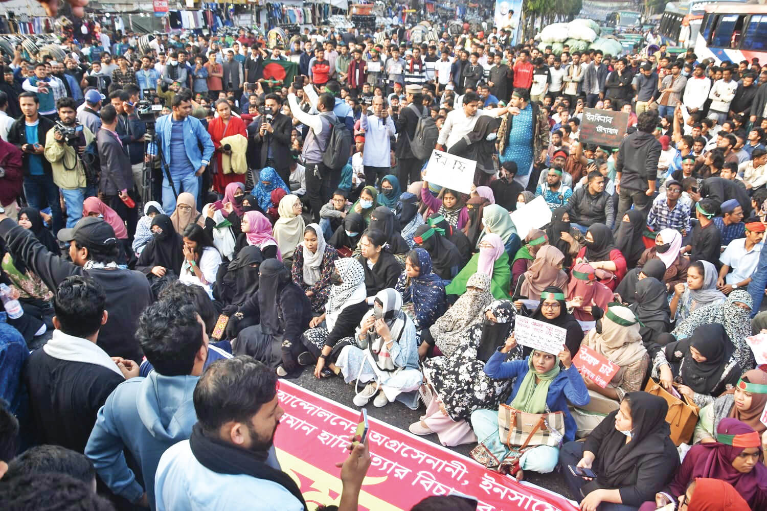 ইনকিলাব মঞ্চের আহ্বায়ক শরীফ ওসমান হাদি হত্যার বিচার দাবিতে নগরীর নিউ মার্কেট মোড়ে অবস্থান কর্মসূচি পালন করেছে সংগঠনটির নেতাকর্মীরা। গতকাল শনিবার বিকাল ৪টার সময় ইনকিলাব মঞ্চের নেতাকর্মীরা এ অবস্থান কর্মসূচি পালন করেন। হাদি হত্যার বিচার চেয়ে সন্ধা ৬টা পর্যন্ত তারা নানা স্লোগান দেন। সংগঠনটির এ অবস্থান কর্মসূচির কারণে নিউ মার্কেট মোড়সহ সংশ্লিষ্ট এলাকায় যানজট হয়। ভোগান্তির শিকার হতে হয় যাত্রীসহ সাধারণ মানুষকে।