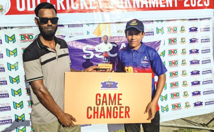 জবাবে সাইনিং ৩৯.৩ ওভার খেলে সব উইকেট হারিয়ে ১৪৫ রান সংগ্রহ করে। দলের আদনান ৩৬ রান ও অপূর্ব ১৯ রান করে। এস এস একাডেমির মারোয়ান মারুফ ৪টি উইকেট নেয়। ম্যান অফ দ্যা ম্যাচ হয় বিজয়ী দলের মারোয়ান মারুফ। তার হাতে পুরস্কার তুলে দেন এস এস ক্রিকেট একাডেমির অভিভাবক জজ মিয়া।