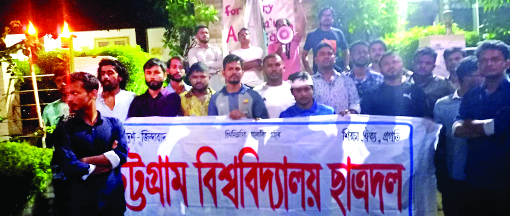 সভাপতি আলাউদ্দিন মহসিন বলেন, আমরা একটি নিরাপদ ক্যাম্পাস চাই। প্রশাসন নিরাপত্তা দিতে ব্যর্থ, অথচ নিয়োগ বাণিজ্যের মাধ্যমে দায়িত্ব পালন করছে। এই ব্যর্থ প্রশাসনের দ্রুত পদত্যাগ চাই। শিক্ষার্থীদের বিক্ষোভ সমাবেশ ও অবস্থান কর্মসূচি : রাত ৮টায় ‘অধিকার সচেতন শিক্ষার্থীবৃন্দ’ ব্যানারে বিক্ষোভ ও অবস্থান কর্মসূচি পালন করা হয়। শিক্ষার্থীরা জিরো পয়েন্ট থেকে মিছিল শুরু করে কাটা পাহাড় রোড হয়ে প্রক্টর অফিসের সামনে অবস্থান নেয়। মিছিলে শিক্ষার্থীরা ‘১, ২, ৩, ৪– প্রক্টর তুই গদি ছাড়’, ‘যে প্রক্টর আমাদের না– সে প্রক্টর মানি না’, ‘আমার ভাই আইসিইউতে– প্রশাসন নিয়োগ বোর্ডে’ সহ নানা স্লোগান দেন।