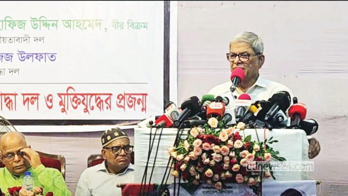 গতকাল শনিবার দুপুরে জাতীয় প্রেস ক্লাব মিলনায়তনে মুক্তিযোদ্ধা সমাবেশে তিনি এ মন্তব্য করেন। জাতীয় বিপ্লব ও সংহতি দিবস উপলক্ষ্যে স্বাধীনতা সার্বভৌমত্ব ও গণতন্ত্র রক্ষায় জাতীয় সংসদ নির্বাচন অপরিহার্য শীর্ষক এ আলোচনা সভা আয়োজন করে জাতীয়তাবাদী মুক্তিযোদ্ধা দল। মির্জা ফখরুল বলেন, আমরা এ ব্যাপারে খুব পরিষ্কার করে বলতে চাই, ১৯৭১ সালকে ভুলিয়ে দেওয়ার কোনো অবকাশ নেই। কারণ, ১৯৭১ সাল হচ্ছে আমাদের জন্মের ঠিকানা, এই ভূখণ্ড একটা স্বাধীন দেশ হিসেবে মর্যাদা পেয়েছে– এটা আমাদের মনে রাখতে হবে সবসময়। ১৯৭১ হচ্ছে আমাদের অস্তিত্বের কথা, আমাদের পরিচিতির কথা, আমাদের স্বাতন্ত্রের কথা। সেদিন যে ঘোষণা হয়েছিল, স্বাধীনতার সেই ঘোষণা হচ্ছে, আমাদের একটা নতুন জাতি হিসেবে আত্মপ্রকাশের কথা।