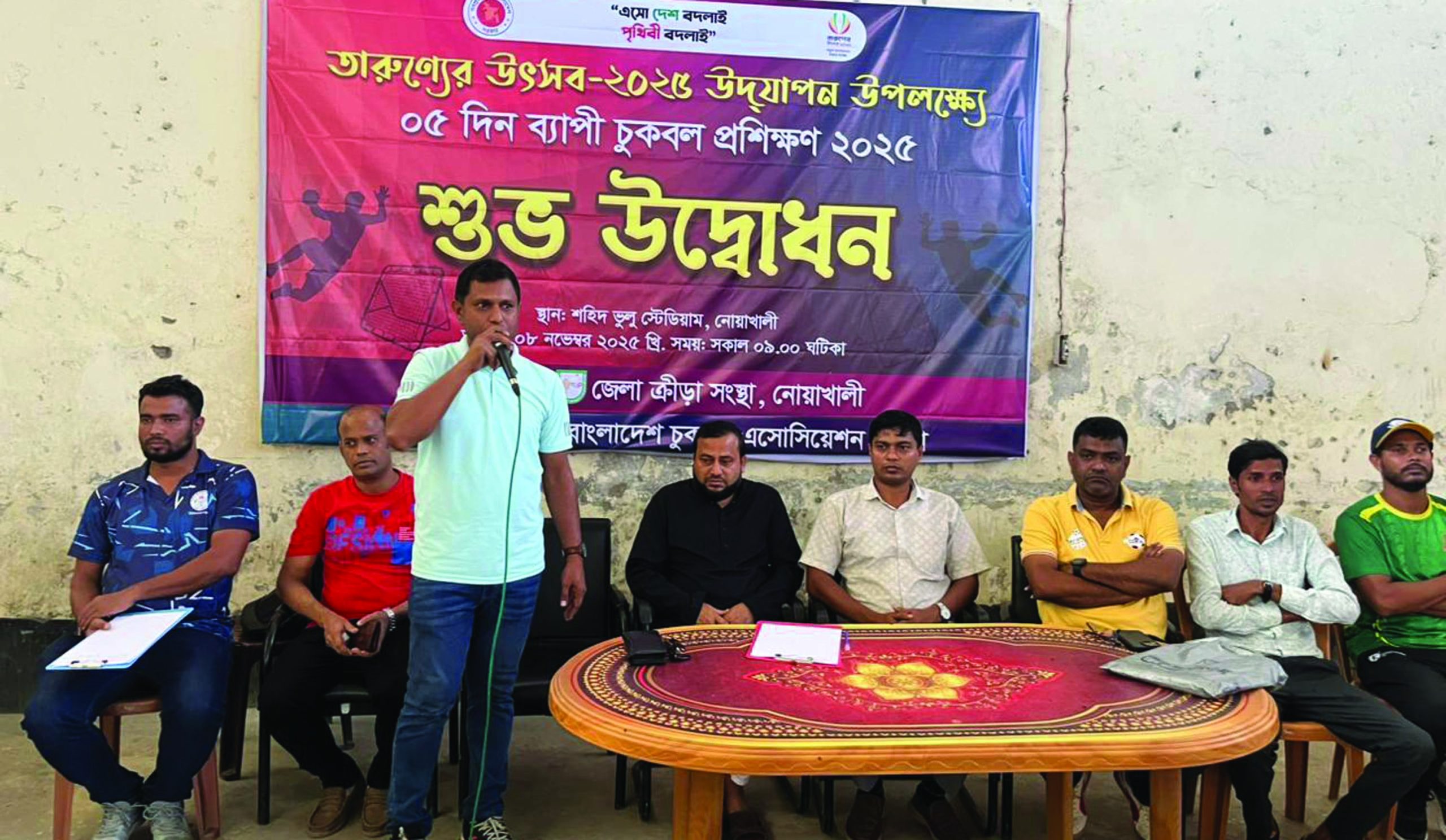 নোয়াখালী জেলা ক্রীড়া সংস্থার আয়োজনে এবং বাংলাদেশ চুকবল এসোসিয়েশনের সহযোগিতায় তারুণ্যের উৎসব ২০২৫ উদযাপন উপলক্ষে নোয়াখালী জেলায় ৫ দিনব্যাপী চুকবল প্রশিক্ষণ ও প্রতিযোগিতা কর্মসূচি শুরু হয়েছে। নোয়াখালী শহীদ ভুলু স্টেডিয়ামের জিমনেসিয়ামে আনুষ্ঠানিকভাবে এই প্রশিক্ষণের উদ্বোধন করা হয়। অনুষ্ঠানে প্রধান অতিথি হিসেবে উপস্থিত ছিলেন নোয়াখালী জেলা ক্রীড়া সংস্থার এডহক কমিটির সদস্য সচিব ও জেলা ক্রীড়া অফিসার মাঈন উদ্দিন মিলকি। বিশেষ অতিথি ছিলেন বাংলাদেশ চুকবল এসোসিয়েশনের এডহক কমিটির সদস্য রায়হান উদ্দিন রুবেল, নোয়াখালী জেলা ক্রীড়া সংস্থার এডহক কমিটির সদস্য নুরুল আমিন খান, চুকবল সংগঠক সরোয়ার আলম চৌধুরী মনি, নোয়াখালী জেলা ক্রীড়া সংস্থার সাবেক নির্বাহী সদস্য ইকবাল বাহার আজাদ, বাংলাদেশ জাতীয় চুকবল দলের খেলোয়াড় ও কোর্সটির প্রশিক্ষক আজিজুল হাকিম মুন্না, অংশগ্রহণকারী শিক্ষা প্রতিষ্ঠান সমূহের শারীরিক শিক্ষা শিক্ষক মুকুন্দ চন্দ্র দাশ, মো. জিয়াউল হায়দার প্রমুখ। উদ্বোধনী অনুষ্ঠান পরিচালনা করেন বাংলাদেশ চুকবল এসোসিয়েশনের এডহক কমিটির সদস্য সাইফুল্লাহ্‌ মুনীর। পাঁচ দিনব্যাপী এই প্রশিক্ষণে অংশ নিচ্ছেন জেলার বিভিন্ন শিক্ষা প্রতিষ্ঠানের তরুণতরুণীরা।