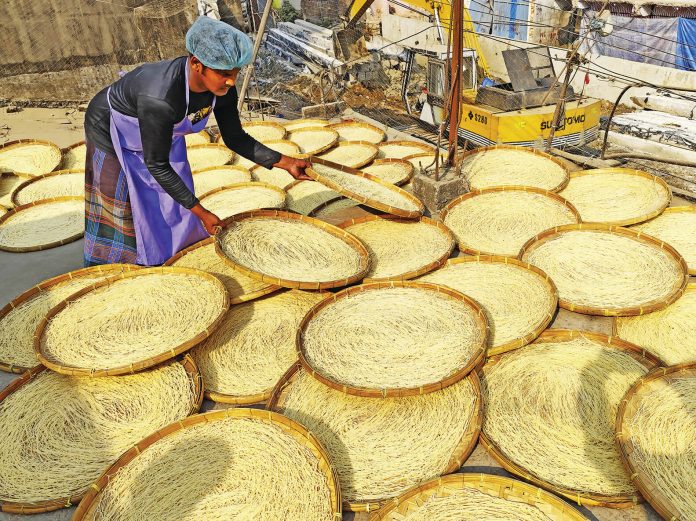 পড়ন্ত সেমাই বাঁশের ডালায় চাক আকৃতিতে সাজানো হয়। পরে রোদে ভালোভাবে শুকিয়ে তন্দুরিতে দেওয়া হয়। আগুনের আঁচে সেমাই লালচে বর্ণ ধারণ করে। ঠান্ডা হওয়ার পর ডালা থেকে টুকরিতে তুলে বিক্রির জন্য সাজিয়ে রাখা হয়। ব্যবস্থাপক দিলীপ কুমার, যিনি ১৯৮১ সাল থেকে এখানে কর্মরত, জানান্তআগে পাইকারি বিক্রি বেশি হলেও এখন খুচরা ক্রেতার চাপই বেশি। নিম্নমানের সেমাই বাজারে এলেও নিয়মিত ক্রেতারা সরাসরি কারখানা থেকে সংগ্রহ করেন। তার মতে, রোদে সঠিকভাবে শুকানোই এই সেমাইয়ের আসল মান নিশ্চিত করে। শুরুতে যে ডাইস ব্যবহার হতো, এখনো সেই ডাইসেই তৈরি হচ্ছে সেমাই।