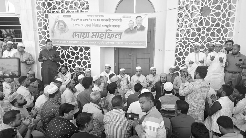 সাবেক প্রধানমন্ত্রী বেগম খালেদা জিয়ার রোগমুক্তি ও সুস্থতা কামনায় দোয়া মাহফিল করেছে পটিয়া উপজেলা ও পৌরসভা বিএনপি। বুধবার বিকেলে পটিয়া মডেল মসজিদে আয়োজিত দোয়া মাহফিলে উপজেলা ও পৌরসভার বিএনপি, যুবদল ও ছাত্রদলের নেতাকর্মী অংশ নেন। দোয়া মাহফিলের আগে চট্টগ্রাম দক্ষিণ জেলা বিএনপির যুগ্ম আহবায়ক সাইফুদ্দীন সালাম মিঠুর সঞ্চালনায় বক্তব্য রাখেন বিএনপির জাতীয় নির্বাহী কমিটির সদস্য ও সাবেক এমপি গাজী মোহাম্মদ শাহজাহান জুয়েল, চট্টগ্রাম দক্ষিণ জেলা বিএনপির আহবায়ক ও সাবেক উপজেলা চেয়ারম্যান ইদ্রিস মিয়া, যুগ্ন আহবায়ক রেজাউল করিম নেছার। উপস্থিত ছিলেন জেলা বিএনপির সদস্য জাহাঙ্গীর আলম চৌধুরী, মোহাম্মদ ইব্রাহিম কমিশনার, যুক্তরাষ্ট্রের ষ্টেট সাউথ বিএনপির সভাপতি সৈয়দ মো. কাউছার, বিএনপি নেতা আব্দুল জলিল চৌধুরী, সাবেক চেয়ারম্যান শফিকুল ইসলাম, জসিম উদ্দিন মাস্টার, আব্দুল মোনাফ, হারুনুর রশিদ চৌধুরী, জিল্লুর রহমান, দক্ষিণ জেলা স্বেচ্ছাসেবক দলের সদস্য সচিব জমির উদ্দিন চৌধুরী, জেলা যুবদলের সহ–সভাপতি রবিউল হোসেন বাদশা, জেলা ছাত্রদলের আহ্বায়ক রবিউল হোসেন রবি, আবু জাফর চৌধুরী, নুরুল আমিন মধু, দিল মোহাম্মদ, ফরিদুল আলম, নজরুল ইসলাম, মজিবুর রহমান, নুরুল আমিন, ফজলুল কাদের, শফিকুল ইসলাম, গাজী মনির, মনসুর আমিরী, ফরিদুল আলম, জয়নাল আবেদীন, সেলিম জাহাঙ্গীর, শাহাবুদ্দিন খোকন মেম্বার প্রমুখ। দোয়া মোনাজাত পরিচালনা করেন পটিয়া মডেল মসজিদের সহকারী ইমাম মাওলানা ইরফানুল ইসলাম। দোয়া মাহফিলে বিএনপি নেতারা বলেন, সাবেক প্রধানমন্ত্রী বেগম খালেদা জিয়া বাংলাদেশের গণতন্ত্র রক্ষার সংগ্রামে নেতৃত্ব দিয়েছেন। তাঁকে উদ্দ্যেশ্য প্রণোদিতভাবে বিগত ফ্যাসিস্ট শেখ হাসিনা জেলে রেখে পরিকল্পিতভাবে শারীরিক ও মানষিক ভাবে কষ্ট দিয়েছে। বাংলাদেশের গণতন্ত্রকামী কোটি মানুষ বেগম খালেদা জিয়ার সুস্থতার জন্য দোয়া করছে। দোয়া মাহফিল শেষে চট্টগ্রাম কঙবাজার মহাসড়কে তারেক রহমানের রাষ্ট্র কাঠামো মেরামতের ৩১ দফা কর্মসূচির লিফলেট বিতরণ করেন বিএনপির নেতারা। প্রেস বিজ্ঞপ্তি।