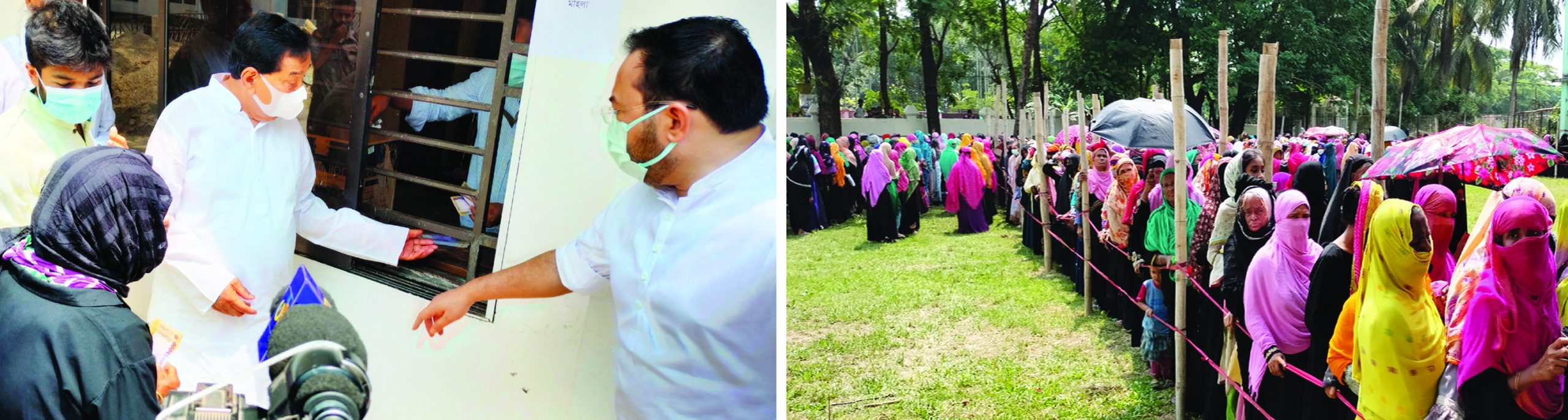 পটিয়ায় ৫০ হাজার নারী–পুরুষের মাঝে নগদ অর্থ সহায়তা দিল কেডিএস গ্রুপ। গতকাল শুক্রবার সকালে উপজেলার জিরি শাইদাইর তৈয়বীয়া মাদ্রাসা মাঠ ও নিজের বাড়ির বাংলোয় অর্থ সহায়তা প্রদান কার্যক্রম উদ্বোধন করেন কেডিএস গ্রুপের চেয়ারম্যান খলিলুর রহমান। জিরি, কুসুমপুরা, কাশিয়াইশ, বড়লিয়াসহ উপজেলার বিভিন্ন ইউনিয়নের ৫০ হাজার মানুষের মাঝে এ নগদ অর্থ সহায়তা প্রদান করা হয়। এর আগে রমজান মাসে উপজেলার ২০ হাজার মানুষকে ১০ কেজি করে চাল ও ইফতার সহায়তা দেন তিনি।