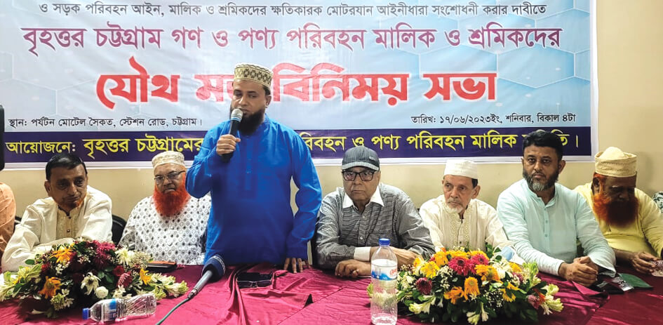 ইকোনমিক লাইফ আইন সংশোধন ও সড়ক পরিবহন আইনের ধারা সংশোধনের দাবিতে বৃহত্তর চট্টগ্রামের গণ ও পণ্য পরিবহন মালিক শ্রমিকের যৌথ মতবিনিময় সভা গতকাল শনিবার বিকালে নগরীর মোটেল সৈকতের একটি হলরুমে অনুষ্ঠিত হয়েছে।