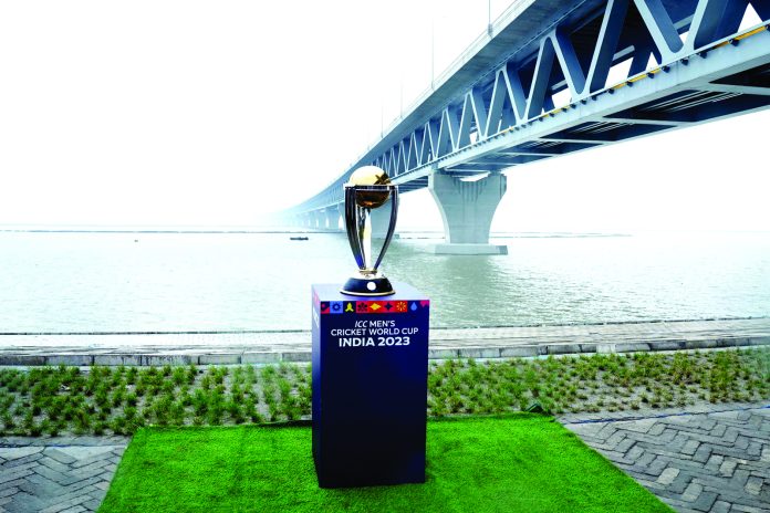 আর দুই মাস পর ভারতে বসতে যাচ্ছে এবারের ক্রিকেট বিশ্বকাপ। আর সে বিশ্বকাপকে সামনে রেখে বিশ্ব ভ্রমণে বের হয়েছে স্বপ্নের বিশ্বকাপ ট্রফি। মহাকাশ থেকে আহমেদাবাদের নরেন্দ্র মোদি স্টেডিয়ামে নেমে গত ২৭ জুলাই থেকে বিশ্ব ভ্রমণ শুরু করে বিশ্বকাপ ট্রফি। এরই মধ্যে আটটি দেশ ঘুরে বিশ্বকাপ ট্রফি এখন বাংলাদেশে। বিশ্বকাপ ভ্রমণের নিয়ম হচ্ছে যে দেশে যাবে সেদেশের গুরুত্বপূর্ণ স্থাপনাকে সঙ্গী করে ছবি তোলা হবে। বর্তমানে বাংলাদেশের সবচাইতে গুরুত্বপূর্ণ স্থাপনা হচ্ছে স্বপ্নের পদ্মা সেতু। আর সে পদ্মা সেতুকে সঙ্গী কের ফটোসেশন করল বিশ্বকাপ ট্রফি। গতকাল সোমবার পদ্মা সেতুর মাওয়া প্রান্তে সেতুকে পেছনে রেখে আয়োজন করা হয় বিশ্বকাপ ট্রফির অফিসিয়াল ফটোশ্যুটের। প্রমত্তা পদ্মার ওপর বাংলাদেশের গর্ব হয়ে দাঁড়িয়ে রয়েছে পদ্মা সেতু। সেই পদ্মা নদী এবং পদ্মা সেতুর সামনে তোলা হলো বিশ্বকাপ ট্রফির ছবি।