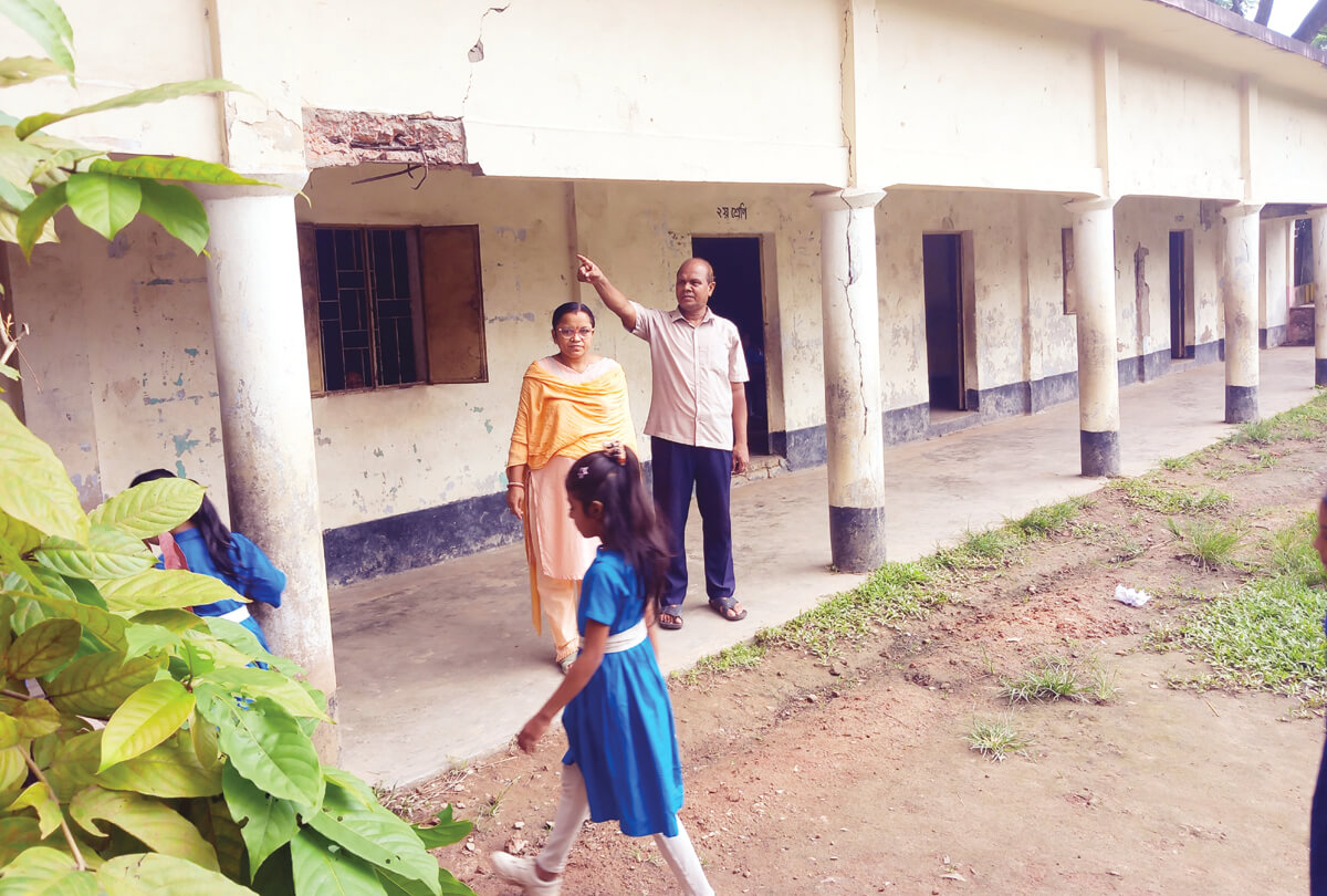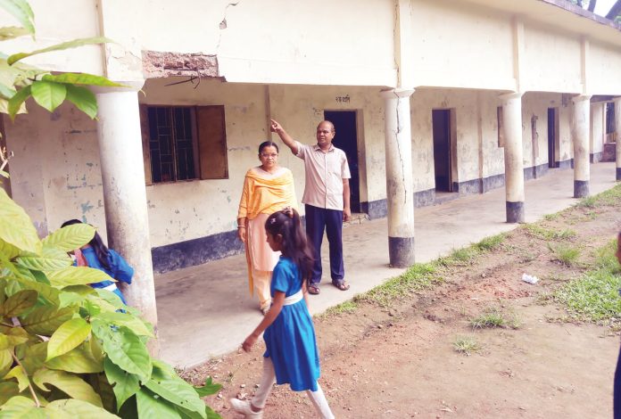 পলেস্তরা খসে পড়ে শিক্ষার্থীদের মাথার ওপর