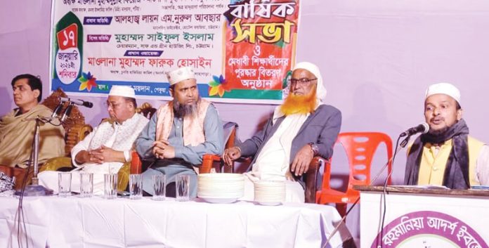 পেকুয়া উপজেলার পশ্চিম টইটং রহমানিয়া আদর্শ ইবতেদায়ী মাদ্রাসার বার্ষিক সভা, গুণীজন সংবর্ধনা ও মেধাবী শিক্ষার্থীদের মধ্যে পুরস্কার বিতরণী অনুষ্ঠান গত ১৭ জানুয়ারি মাদ্রাসা ময়দানে অনুষ্ঠিত হয়েছে। মাদ্রাসার প্রধান শিক্ষক মাওলানা জিয়াউল হক শফিকীর পরিচালনায় সভায় সভাপতিত্ব করেন বারবাকিয়া ইউনিয়ন পরিষদের চেয়ারম্যান অধ্যক্ষ মাওলানা এ এইচ এম বদিউল আলম ও মাওলানা আবদুর রহমান (রহ.) ফাউন্ডেশনের চেয়ারম্যান মাওলানা মুহাম্মদ মাহফুজুর রহমান। সভায় স্বাগত বক্তব্য রাখেন মাদ্রাসার প্রতিষ্ঠাতা ও কঙবাজার ইন্টারন্যাশনাল ইউনিভার্সিটির সহকারী অধ্যাপক রায়হান আজাদ। এতে প্রধান অতিথি হিসেবে বক্তব্য রাখেন লায়ন এম নুরুল আবছার। বিশেষ অতিথি হিসেবে বক্তব্য রাখেন এডভোকেট মুহাম্মদ এনামুল হক, পল্লী চিকিৎসক মোসলেম উদ্দিন, স্থানীয় ইউপি সদস্য আবুল কালাম, উদ্যোক্তা এইচ এম রমিজ উদ্দিন ও জাফর আহমদ। সভায় প্রধান ওয়ায়েজ হিসেবে তকরীর করেন চুনতী হাকিমিয়া কামিল মাদ্রাসার অধ্যক্ষ মাওলানা মুহাম্মদ ফারুক হোসাইন। বিশেষ ওয়ায়েজ হিসেবে বক্তব্য রাখেন পশ্চিম চাম্বল বাংলা বাজার শাহ আমানত দাখিল মাদ্রাসার শিক্ষক ক্বারী মাওলানা আব্দুল মজিদ, চুনতী হাকিমিয়া কামিল মাদ্রাসার শিক্ষক মাওলানা মুহাম্মদ আনছারুল ইসলাম ও টইটং আলহেরা মডেল একাডেমির পরিচালক মাওলানা মুহাম্মদ আবদুর রহিম। সভায় ইসলামী শিক্ষা ও জনসেবায় বিশেষ অবদানের জন্য বারবাকিয়া ইউনিয়ন পরিষদের চেয়ারম্যান অধ্যক্ষ মাওলানা এ এইচ এম বদিউল আলম এবং দাওয়াহ ও সমাজ সেবায় বিশেষ অবদানের জন্য চবির সাবেক রেজিস্ট্রার মাওলানা মুহাম্মদ ইসমাইলকে সংবর্ধনা দেয়া হয়। এছাড়া জাতীয় শিক্ষা সপ্তাহ–২০২৬ এ জেলা পর্যায়ে শ্রেষ্ঠ প্রধান শিক্ষক নির্বাচত হওয়ায় রাজাখালী এয়ার আলী খান আদর্শ উচ্চ বিদ্যালয়ের প্রধান শিক্ষক মুহাম্মদ জাহেদ উল্লাহকে সম্মাননা স্মারক প্রদান করা হয়। প্রেস বিজ্ঞপ্তি।