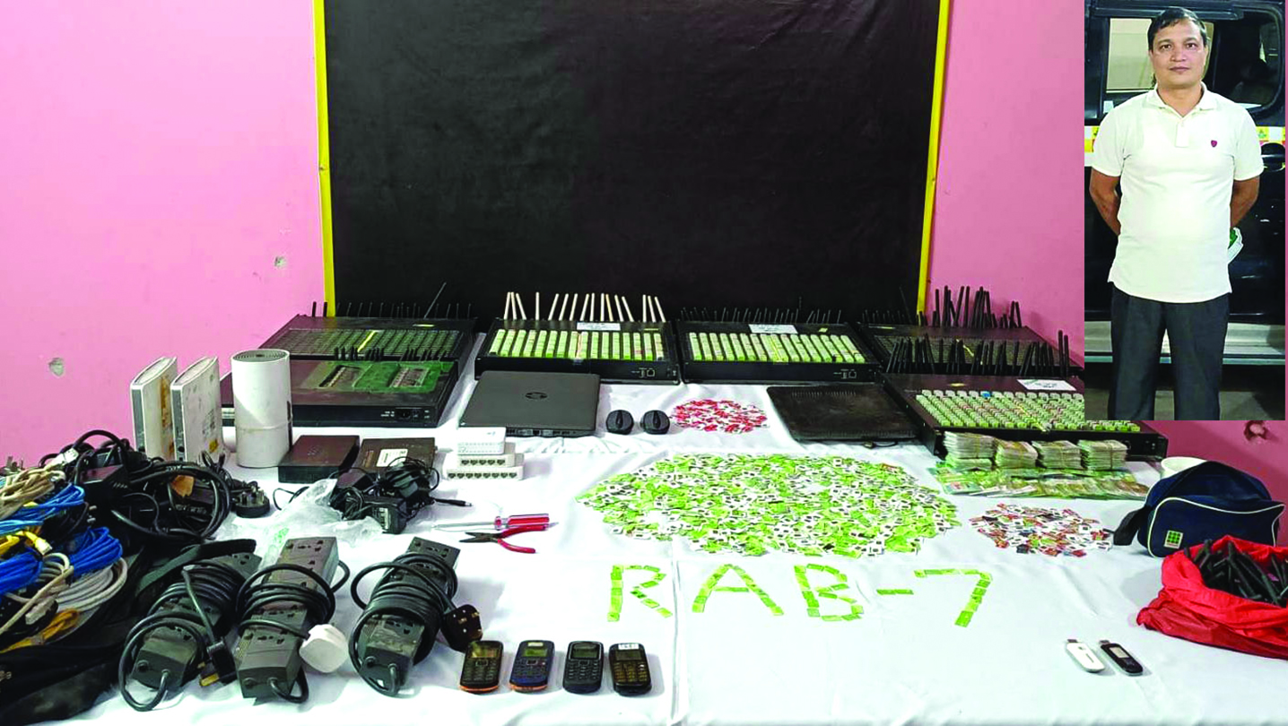 নগরীর পাঁচলাইশ থানাধীন একটি ভবনের দশতলার ফ্ল্যাট থেকে বিপুল পরিমাণ অবৈধ ভিওআইপি ব্যবসার সরঞ্জামসহ মো. নাছির উদ্দিন (৪৩) নামে এক ব্যক্তিকে গ্রেপ্তার করেছে র্যাব। গ্রেপ্তার নাছির লোহাগাড়া থানার বড়হাতিয়া ইউনিয়নের বড়হাতিয়া গ্রামের আব্দুল মোনাফের ছেলে। গতকাল বিকেলে চান্দগাঁও ক্যাম্পে আয়োজিত সংবাদ সম্মেলনে এসব তথ্য জানান র্যাব-৭ এর অধিনায়ক লে. কর্নেল এম এ ইউসুফ।