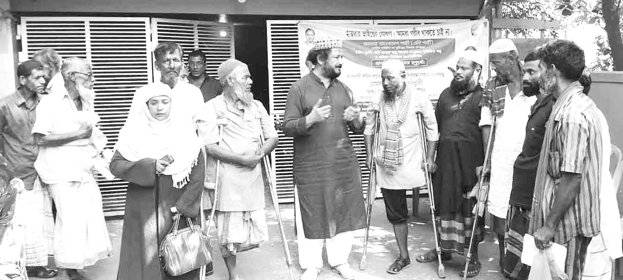 পাথরঘাটা ওয়ার্ডে শারীরিকভাবে প্রতিবন্ধী সংগঠনের নেতৃবৃন্দের সাথে আমার বাংলাদেশ পার্টির (এবি পার্টি) চট্টগ্রাম৯ আসনে মনোনয়নপ্রাপ্ত প্রার্থী বীর মুক্তিযোদ্ধা হায়দার আলী চৌধুরী উঠান বৈঠক অনুষ্ঠিত হয়। গতকাল শুক্রবার সকালে অনুষ্ঠিত উঠান বৈঠকে বীর মুক্তিযোদ্ধা হায়দার আলী চৌধুরী বলেন, দেশের এই ক্রান্তিকালে অন্তবর্তী সরকারের আমলে লক ডাউন ও আগুন সন্ত্রাস করে যারা কর্মসূচি দিয়ে অসহায় গরীব দুঃখী খেটে খাওয়া মেহনতি মানুষ বিশেষ করে শারীরিকভাবে প্রতিবন্ধী মানুষদের অর্থকষ্ট ও বিড়ম্বনা বাড়িয়ে তুলেছে, তারা দেশ ও জাতির শত্রু, জনগণের শত্রু। তাদের বিরুদ্ধে জনগণকে ঐক্যবদ্ধভাবে প্রতিরোধ গড়ে তুলতে হবে। প্রতিবন্ধীদের প্রতি সদয় হতে তিনি সকল মহলের প্রতি আহ্বান করেন এবং লকডাউন আগুন সন্ত্রাসের মতো হিংসাত্মক কর্মসূচি পরিহার করার জন্য অনুরোধ করেন। সভায় অন্যান্যের মধ্যে বক্তব্য রাখেন প্রতিবন্ধী নুর হোসেন, অমল দাশ, কল্পনা আক্তার প্রমুখ। প্রেস বিজ্ঞপ্তি।