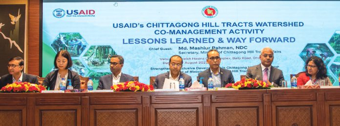 গত মঙ্গলবার রাজধানীর বেইলি রোডে শেখ হাসিনা পার্বত্য চট্টগ্রাম ঐতিহ্য সংরক্ষণ ও গবেষণা কেন্দ্রের মাল্টিপারপাস হলরুমে ‘চিটাগাং হিলট্রাক্টস ওয়াটারশেড কো–ম্যানেজমেন্ট এক্টিভিটি– লেসনস লার্নড এন্ড ওয়ে ফরওয়ার্ড’ শীর্ষক কর্মশালায় প্রধান অতিথির বক্তব্যে তিনি এসব কথা বলেন। তিনি আরো বলেন, পানি সংরক্ষণে পার্বত্য অঞ্চলে বন সৃজন, সংরক্ষণ ও প্রতিকারের বিষয়ে অনেক কাজ করার আছে। ভৌগোলিক, রাজনৈতিক, সাংস্কৃতিক ও অর্থনৈতিক দিকগুলোকে বিবেচনা করে একটি যুগোপযোগী সিদ্ধান্তে পৌঁছাতে হবে।