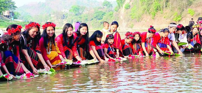 রীতি অনুযায়ী পুরনো বছরের দুঃখ, জরা ভুলে নতুন বছরের মঙ্গল কামনায় নদীর জলে দেবী গঙ্গার উদ্দেশ্যে ভাসানো হয় ফুল। চৈত্র মাসের ২৯ তারিখে সূর্যোদয়ের সাথে সাথে ফুল ভাসানো শুরু হয়। আর এর মধ্য দিয়ে শুরু হয়েছে বৈসাবি উৎসব। পাহাড়ে এখন উৎসবের রং লেগেছে। করোনার কারণে গত দুই বছর আয়োজন ছিল সংক্ষিপ্ত। এবার খাগড়াছড়ি, রাঙামাটি ও বান্দরবানে তাই অন্যরকম আমেজ।