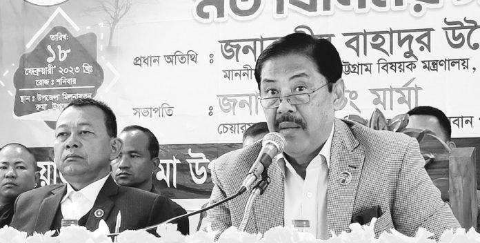 গতকাল শনিবার বান্দরবানে রুমা উপজেলায় উন্নয়ন কাজের উদ্বোধনী অনুষ্ঠানে প্রধান অতিথির বক্তব্যে পার্বত্য মন্ত্রী বীর বাহাদুর উশৈসিং এমপি এসব কথা বলেন।পরে রুমা উপজেলার ৪টি ইউনিয়নের ১৫শ ৯৬ জন মানুষের মাঝে ভিজিডি কার্ড বিতরন করেন তিনি।