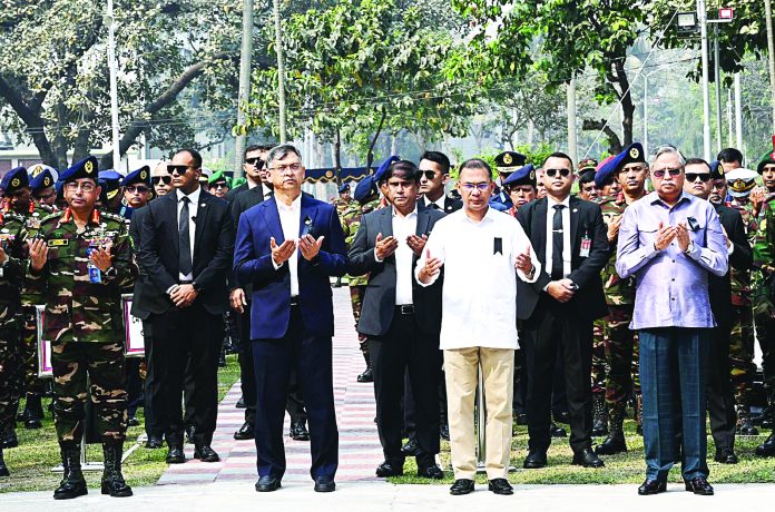 পিলখানার ঘটনা নিহতদের প্রতি শ্রদ্ধা জানিয়ে তারেক রহমান বলেন, মাহে রমজান আমাদের সংযম এবং আত্মশুদ্ধির শিক্ষা দেয়। মহান আল্লাহর দরবারে প্রার্থনা করি তিনি যেন শহীদদের আত্মাকে শান্তিতে রাখেন, তাদের পরিবারেরকে ধৈর্য ও শক্তি দান করেন এবং আমাদের রাষ্ট্র প্রতিষ্ঠান সম্মুখে ন্যায় শৃঙ্খলা ও দায়িত্ব পথে পরিচালিত করেন। প্রধানমন্ত্রী বলেন, দীর্ঘ সংগ্রামের পর আজ জনগণের রায় নির্বাচিত সরকার দেশ পরিচালনা করছে। দেশের প্রশ্নে আমরা সীমান্তরক্ষী বাহিনীকে আরও আধুনিক ও সুসংহত করবো ইনশাআল্লাহ। আমাদের সদস্যরা দেশপ্রেম ও পেশাগত উৎকর্ষতায় সীমান্তে দায়িত্ব পালন করবেন ইনশাআল্লাহ।