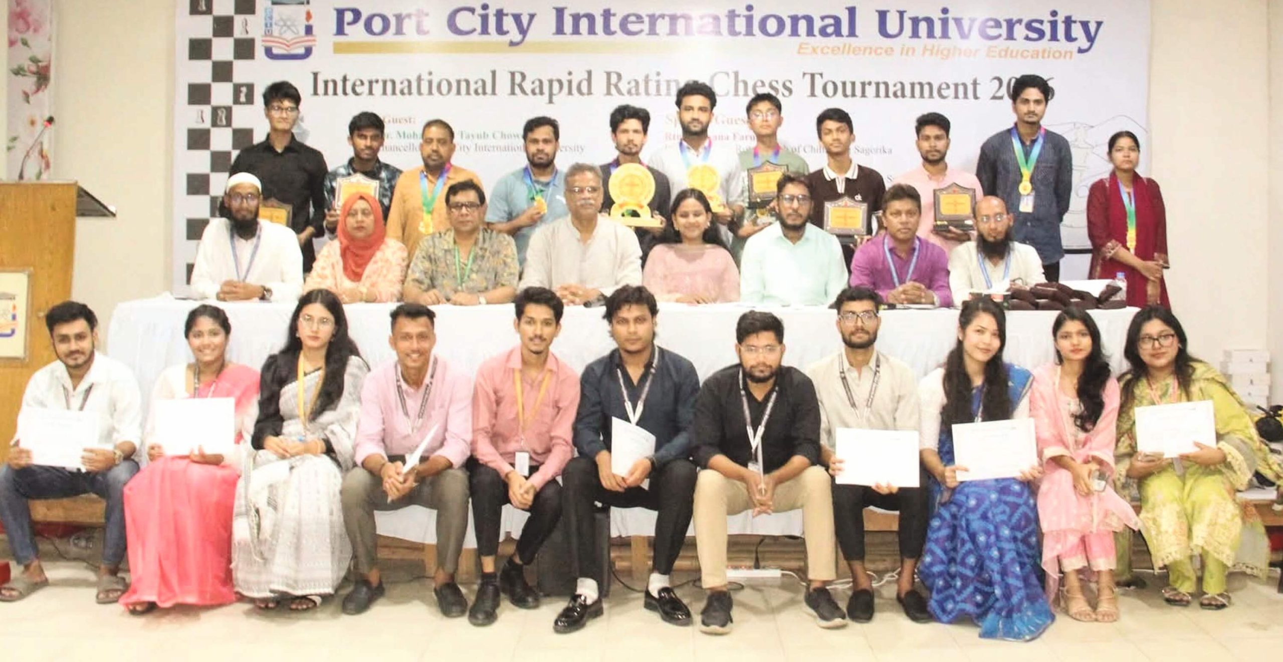 পোর্ট সিটি ইন্টারন্যাশনাল ইউনিভার্সিটিতে (পিসিআইইউ) ইন্টারন্যাশনাল র্যাপিড রেটিং চেস টুর্নামেন্ট অনুষ্ঠিত হয়েছে। গতকাল শনিবার বিশ্ববিদ্যালয়ের স্পোর্টস ফোরামের উদ্যোগে আয়োজিত অনুষ্ঠানে প্রধান অতিথি ছিলেন বিশ্ববিদ্যালয়ের উপাচার্য প্রফেসর ড. মোহাম্মদ তৈয়ব চৌধুরী। বিশেষ অতিথি ছিলেন চট্টগ্রাম সাগরিকা রোটারি ক্লাবের সভাপতি রোটারিয়ান রোকসানা ফারুক, সিজেকেএস দাবা কমিটির সেক্রেটারি ও ইন্টারন্যাশনাল চেস ফেডারেশন (ফিদে)-এর ফিদে আরবিটার ইঞ্জিনিয়ার এস. এম. তারেক এবং ফিদে স্কুল ইনস্ট্রাক্টর, ন্যাশনাল আরবিটার তানজিলা তুর নুর।