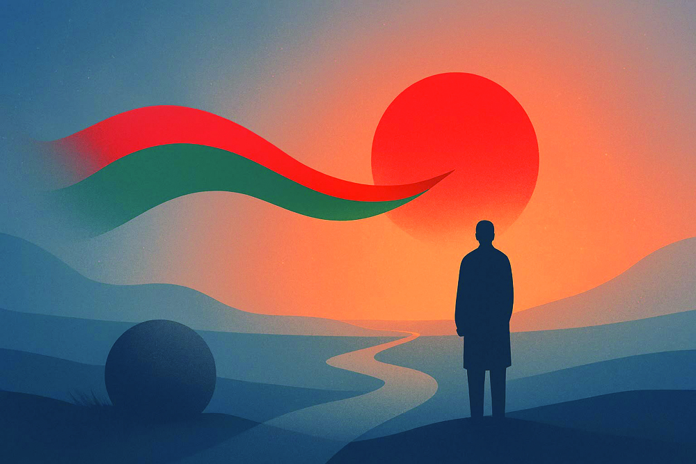 ওর আশেপাশে অনেক লোক জমে গেল। সবাই ওকে অবাক হয়ে দেখছে। দূরে কোথাও গান বেজে চলছে, ‘পূর্ব দিগন্তে সূর্য উঠেছে, রক্ত লাল, রক্ত লাল।’