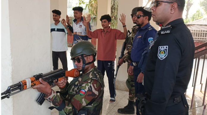 এ মহড়া কার্ক্রমে নির্বাচনে নিয়োজিত বাংলাদেশ সেনাবাহিনী, বিজিবি, র্যাব, পুলিশ, আনসার ব্যাটেলিয়নসহ আইনশৃঙ্খলা বাহিনীর সদস্যগন অংশ নেন।