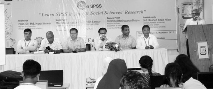 পোর্ট সিটি ইউনিভার্সিটি ইংরেজি বিভাগের উদ্যোগে বর্তমান সময়ে আধুনিক পদ্ধতিতে ডাটা বিশ্লেষণ ও উচ্চতর গবেষণা শীর্ষক এক কর্মশালা গতকাল বৃহস্পতিবার অনুষ্ঠিত হয়। কর্মশালা উদ্বোধন করেন উপাচার্য অধ্যাপক ড. মো. নূরল আনোয়ার। বিশেষ অতিথি ছিলেন ইংরেজি বিভাগের কো-অর্ডিনেটর অধ্যাপক মাইনুল হাসান চৌধুরী। কর্মশালা পরিচালনা করেন চবি পরিসংখ্যান বিভাগের সহযোগী অধ্যাপক মোহাম্মদ মনিরুজ্জামান ভুঁইয়া।ইংরেজি বিভাগের সভাপতি মু. রাশেদ খান মিলনের সভাপতিত্বে এতে উপস্থিত ছিলেন কোষাধ্যক্ষ প্রফেসর ড. গণেশ চন্দ্র রায়, বিজ্ঞান ও প্রকৌশল অনুষদের ডিন প্রফেসর ইঞ্জিনিয়ার মফজল আহমেদ, ব্যবসায় অনুষদের ডিন প্রফেসর ড. মো. ফসিউল আলম, বিভাগীয় শিক্ষক-শিক্ষিকা ও শিক্ষার্থীবৃন্দ। প্রেস বিজ্ঞপ্তি।