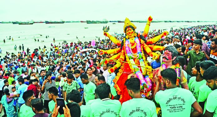 প্রতিমা বিসর্জনে শেষ হলো দুর্গোৎসব