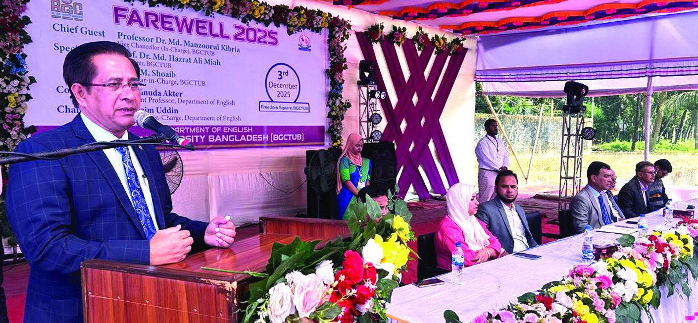 বিজিসি ট্রাস্ট ইউনিভার্সিটির ইংরেজি বিভাগের বিদায় অনুষ্ঠান বিভাগের চেয়ারম্যান আজিম উদ্দিনের সভাপতিত্বে বিশ্ববিদ্যালয়ের ফ্রিডম স্কয়ারে অনুষ্ঠিত হয়েছে। এতে প্রধান অতিথি ছিলেন উপাচার্য (ভারপ্রাপ্ত) প্রফেসর ড. মো. মনজুরুল কিবরীয়া। বিশেষ অতিথি ছিলেন ট্রেজারার প্রফেসর ড. হযরত আলী মিয়া ও রেজিস্ট্রার (ভারপ্রাপ্ত) . এস এম শোয়েভ।