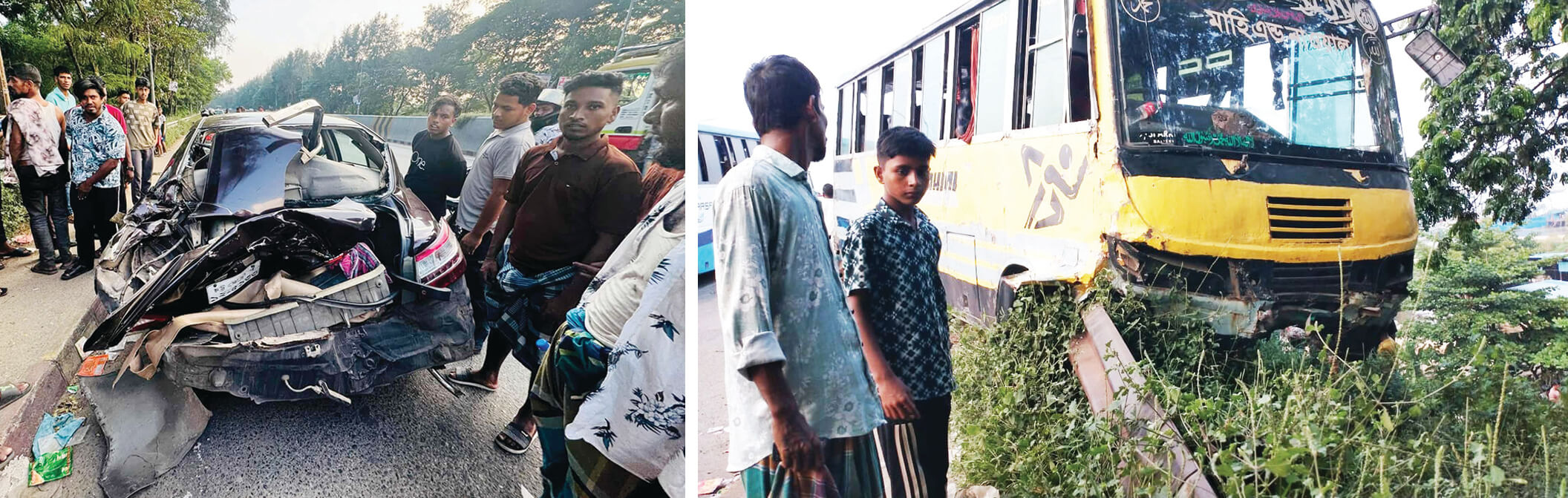 কর্ণফুলীতে একটি যাত্রীবাহী বাস নিয়ন্ত্রণ হারিয়ে দুর্ঘটনার শিকার হয়েছে। এ সময় বাসটি একটি প্রাইভেটকারকে ধাক্কা দিয়ে সেতুর রেলিংয়ের ওপর উঠে আটকে যায়। গতকাল শনিবার বিকেল সোয়া ৪টার দিকে কর্ণফুলীর শাহ আমানত সেতুর ১ম সিঁড়ি এলাকায় এ ঘটনা ঘটে। এতে দুর্ঘটনাকবলিত বাসটির চালক ও একজন পথচারী গুরুতর আহত হওয়ার খবর পাওয়া গেছে। আহতদের উদ্ধার করে চট্টগ্রাম মেডিকেল কলেজ হাসপাতালে নেওয়া হয়েছে। যদিও তাদের পরিচয় পাওয়া যায়নি। জানা যায়, শাহ আমানত সেতু হয়ে চট্টগ্রাম শহর থেকে আনোয়ারা যাচ্ছিল মাহি এন্ড নাওয়াল নামের একটি যাত্রীবাহী বাস। সেতুর ১ম সিঁড়ি এলাকায় পৌঁছালে বাসটি নিয়ন্ত্রণ হারিয়ে একটি প্রাইভেটকারকে ধাক্কা দেওয়ার পর সেতুর রেলিংয়ের ওপর উঠে যায়। এতে প্রাইভেটকারটি দুমড়ে–মুচড়ে যায়। এ সময় একজন পথচারী বৃদ্ধ ও বাস চালক গুরুতর আহত হলে পুলিশ ও স্থানীয়রা উদ্ধার করে হাসপাতালে ভর্তি করে।