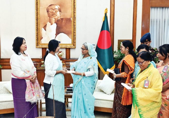 প্রধানমন্ত্রীর সঙ্গে কলাগাছের তন্তু থেকে পণ্য প্রস্তুতকারী দলের সাক্ষাৎ